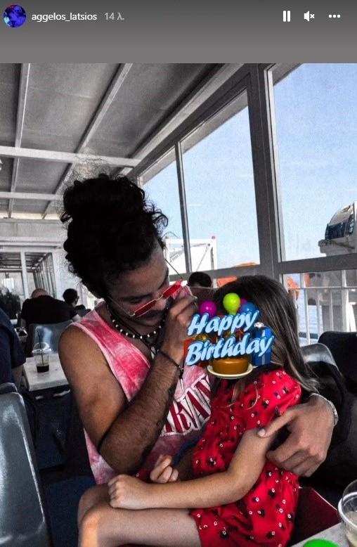 Ο μοναχογιός της Ελένης Μενεγάκη κοινοποίησε μία φωτογραφία στην οποία ποζάρει έχoντας αγκαλιά τη μικρή Μαρίνα στο κατάστρωμα ενός πλοίου, κρύβοντας το πρόσωπό της με ένα GIF το οποίο έγραφε: "Happy Birthday".