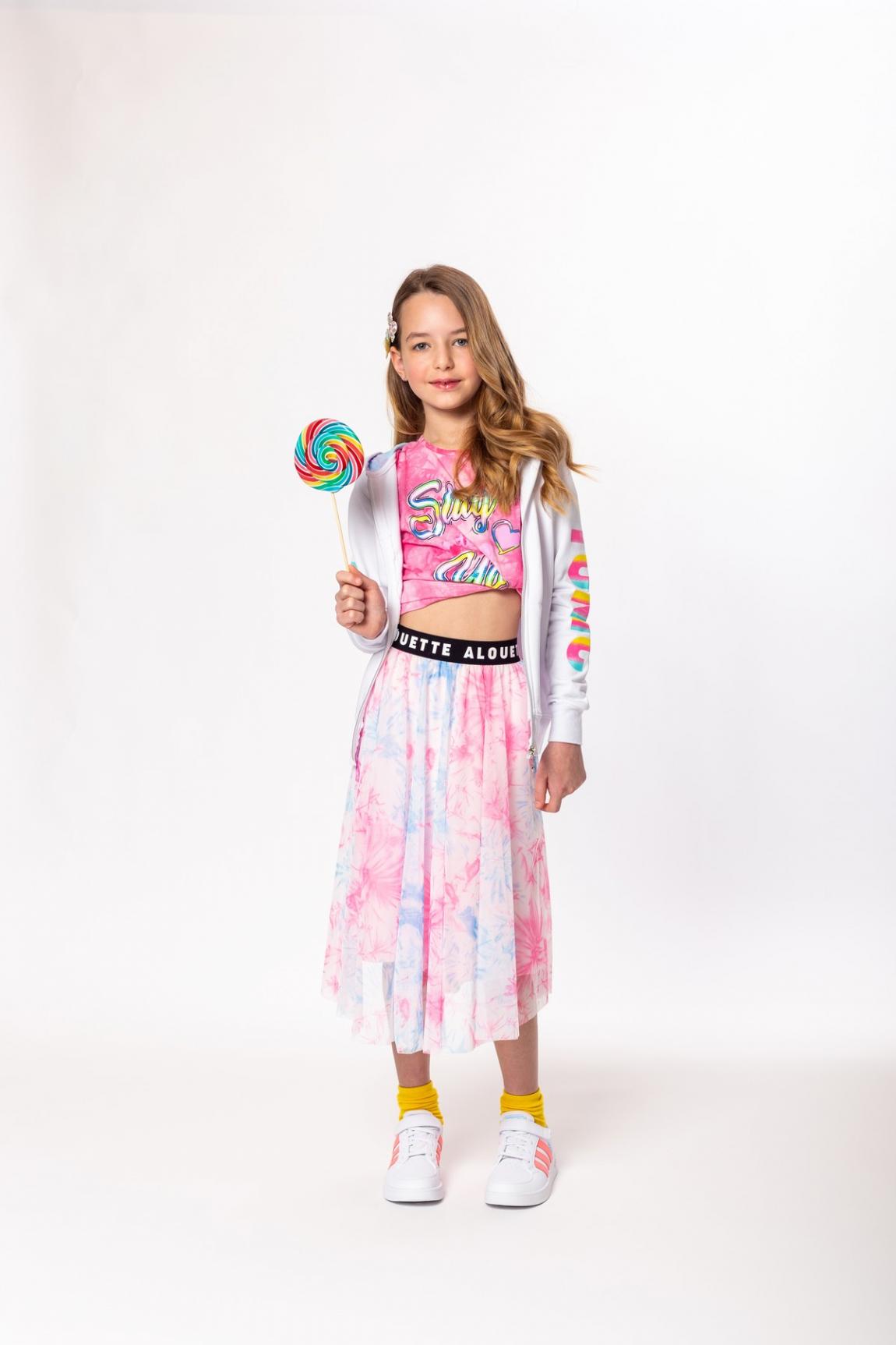 Φούστα τούλινηΖακέτα με τύπωμα glitter στα μανίκιαΜπλούζα tie dye με glitter λεπτομέρειαΠαπούτσια Adidas