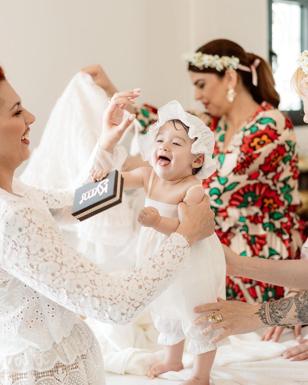 Με matchy-matchy outfits εμφανίστηκαν μαμά και κόρη, επιλέγοντας λευκά κιπούρ φορέματα. Ειδικά το φόρεμα της always stylish μαμάς με τα περίτεχνα μοτίβα από δαντέλα έκλεψε τις εντυπώσεις...