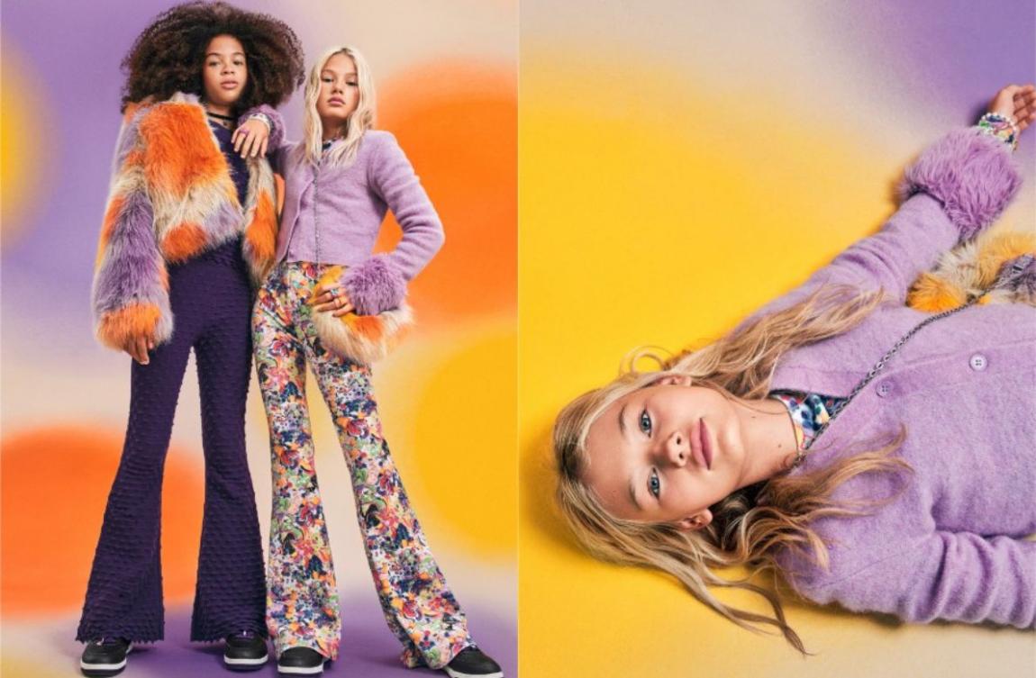 Εξυμνώντας τα νεανικά, ευφάνταστα μυαλά που προσεγγίζουν το αντισυμβατικό στυλ με ανεμελιά, τα βασικά looksτης συλλογής περιλαμβάνουν κομμάτια με street επιρροές σε μια ζωηρή παλέτα φωτεινών χρωμάτων του ουράνιου τόξου. Γεμάτες ζωντάνια, οι εικόνες της καμπάνιας απαθανατίζουν την αναζωογονητική διάθεση της δημιουργικότητας μέσα από το styling που σηματοδοτεί τη νεανική αυτοέκφραση. Ποιος μπορεί να αντισταθεί στη γοητεία ενός χαρούμενου παλτό από συνθετική γούνα σε εντυπωσιακές αποχρώσεις του ηλιοβασιλέματος ή σε ένα μπουφάν διακοσμημένο με παγέτες και μια ασορτί φούστα skater, για να μην παραβλέψουμε το βελούδινο τοπ με τα σχέδια κομφετί και το ασορτί παντελόνι-καμπάνα; Ενώ το τζιν παντελόνι με τις πορτοκαλί πιτσιλιές, που συνδυάζεται με χαλαρά, μοντέρνα και γραφιστικά, ανάγλυφα πλεκτά, προσφέρεται για στιγμές χαλάρωσης, μαζί με τα ζωηρόχρωμα ρούχα για το σπίτι. Στα αξεσουάρ, το τσαντάκι και το καπέλο bucket από συνθετική γούνα ανοίγουν τον δρόμο για απεριόριστους πειραματισμούς, ενώ τα αθλητικά παπούτσια μπορούν να εξατομικευτούν με χάντρες και γούρια.