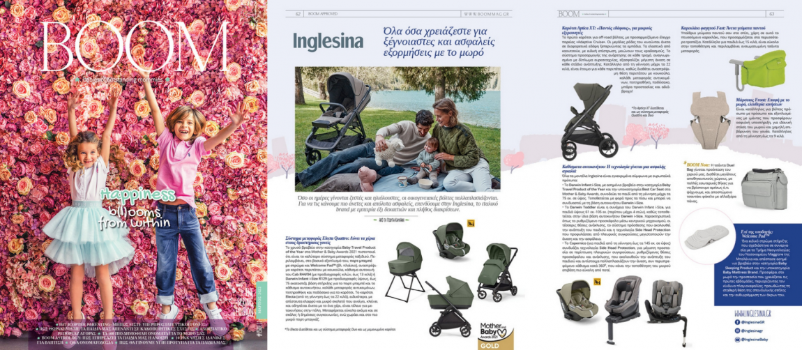 Όσο οι ημέρες μεγαλώνουν, οι οικογενειακές βόλτες πολλαπλασιάζονται. Για να τις κάνουμε πιο άνετες και απόλυτα ασφαλείς, επενδύουμε στην Inglesina, το ιταλικό brand με εμπειρία έξι δεκαετιών και πλήθος διακρίσεων.