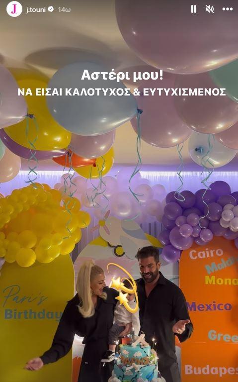 Ενός έτους έγινε στις 9 Ιανουαρίου ο γιος της Ιωάννας Τούνη και του Δημήτρη Αλεξάνδρου. Ο μικρός Πάρης γιόρτασε τα πρώτα του γενέθλια με ένα πάρτι υπερπαραγωγή που του ετοίμασαν οι γονείς του με θέμα… τι άλλο; Τα ταξίδια του!