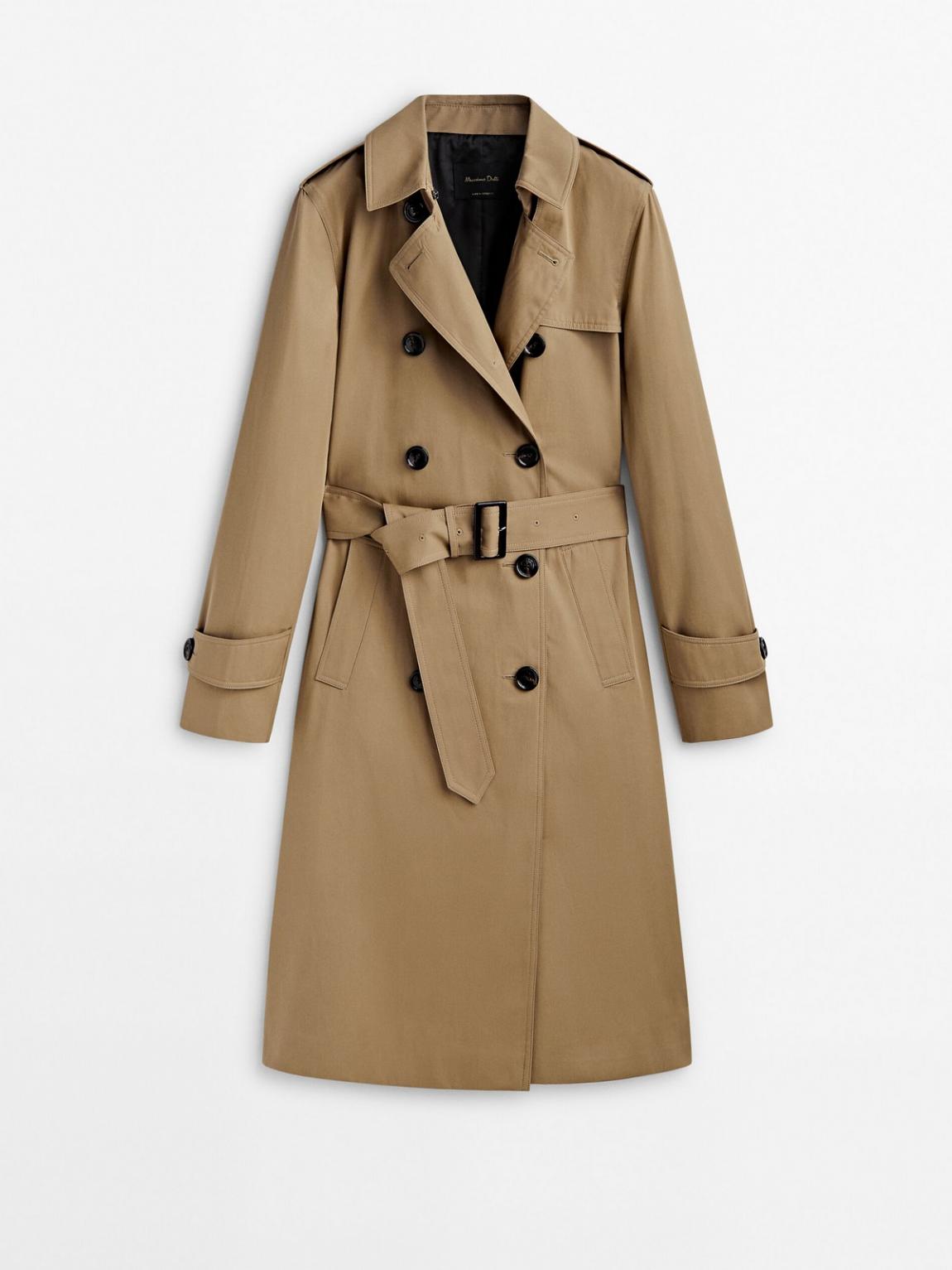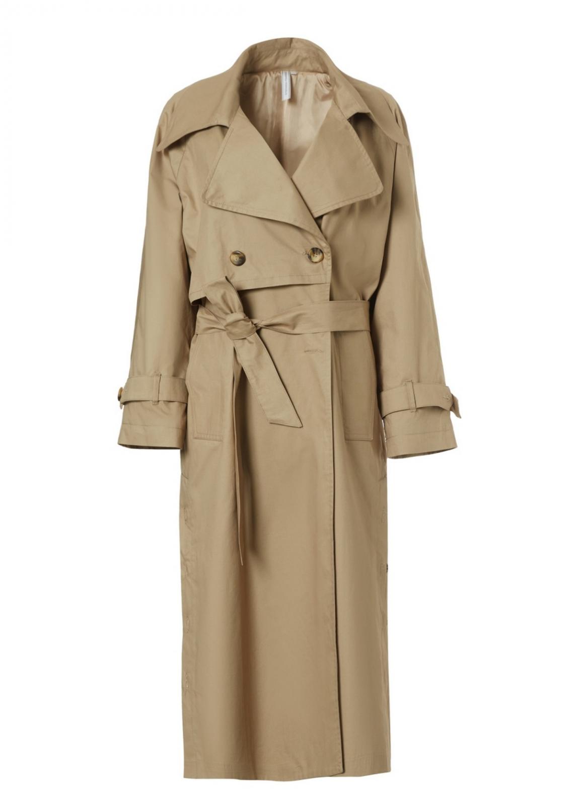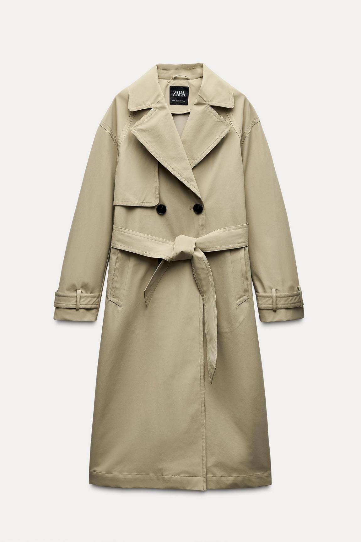 #2 Midi trench με ζώνη water repellent: Υδροαπωθητική καμπαρντίνα με γιακά, πέτο και σταυρωτό κλείσιμο στο μπροστινό μέρος με κουμπιά. Θα τη βρείτε και σε μαύρο χρώμα!