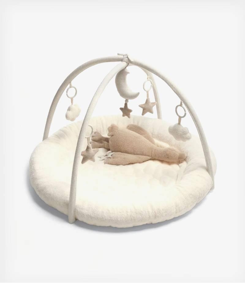 Mamas & Papas Χαλάκι Δραστηριοτήτων WTTW Duckling - Let's play all day!: Ανακαλύπτουμε... τον κόσμο με το χαλάκι παιχνιδιού Welcome to the World, που είναι σχεδιασμένο από πολυτελές, εξαιρετικά μαλακό υλικό. Διαθέτει όμορφες λεπτομέρειες περιμετρικά του χαλιού και μια εξωτερική υφασμάτινη μπάρα που κρατά ασφαλές το μωρό, ενώ εξερευνά το νέο του παιχνίδι. Επιπλέον, έχει 2 αφαιρούμενες καμάρες παιχνιδιών, 4 αφαιρούμενα κρεμαστά μαλακά παιχνίδια – λιοντάρι, ζέβρα, ελέφαντα και μαϊμού – που κροταλίζουν και τρίζουν για να διεγείρουν τις αισθήσεις του βρέφους, καθώς και ένα μαλακό παιχνίδι με έναν καθρέφτη και κρίκο οδοντοφυΐας με τον οποίο μπορεί να αλληλεπιδρά. Κατάλληλο από τη γέννηση.