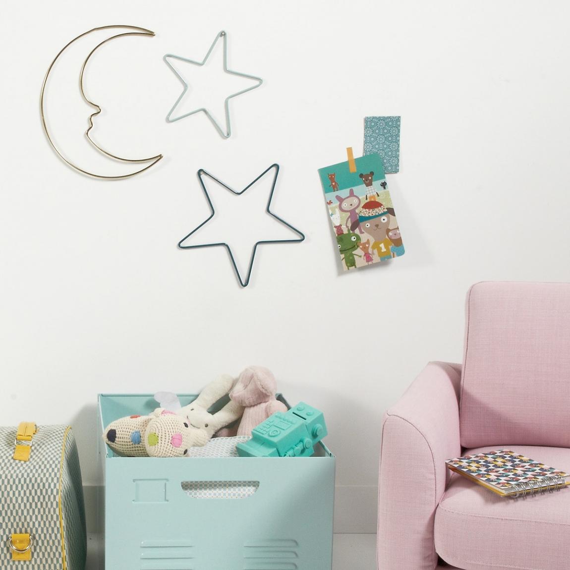 Πολύ όμορφα διακοσμητικά τοίχου από μεταλλικό σύρμα σε σετ των 3 τεμαχίων: ένα φεγγάρι και δύο αστέρια.