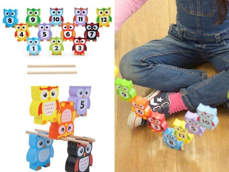 Κουκουβάγιες- Ακροβάτες. Ισορροπούν η μία πάνω στην άλλη (ή πάνω στις ξύλινες δοκούς τους) με όλους τους διαφορετικούς τρόπους που μπορείτε να φανταστείτε και θα περάσετε μαζί ατέλειωτες ώρες διασκέδασης! Πολύχρωμες, ξύλινες και αριθμημένες από το 1 έως το 12, θα βοηθήσουν τα παιδιά να εξασκηθούν στους αριθμούς, τα χρώματα και τη λεπτή κινητικότητα ενεργοποιώντας ταυτόχρονα τη φαντασία και τη δημιουργικότητά τους.