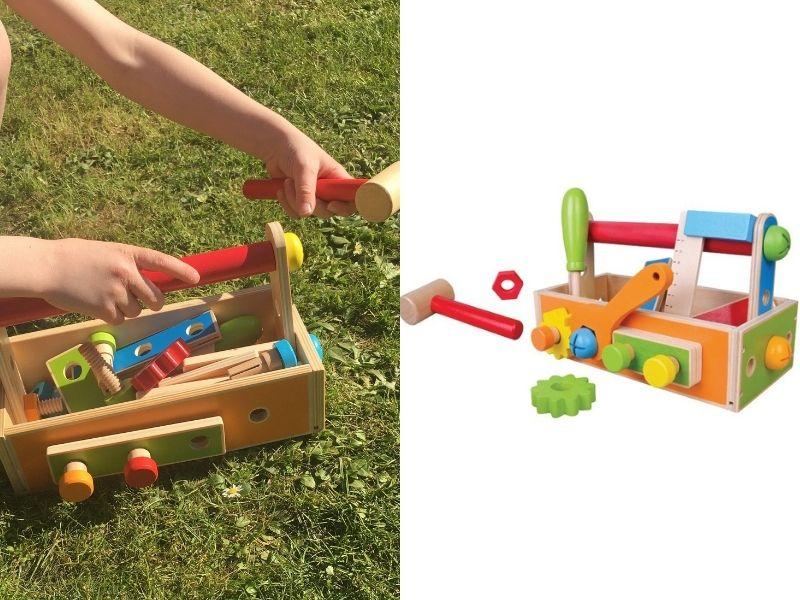 Το πρώτο μου βαλιτσάκι εργαλείων. Αυτό το πανέμορφο, ξύλινο κουτί εργαλείων θα διασκεδάσει και θα απασχολήσει πολλούς επίδοξους μάστορες! Ο μικρός μάστορας μπορεί να μεταφέρει το βαλιτσάκι του οπουδήποτε και επισκευάσει κάθε βλάβη με τις βίδες και τα παξιμάδια του, ενώ θα νιώθει αυτοπεποίθηση και χαρά με όλα όσα δημιουργεί!