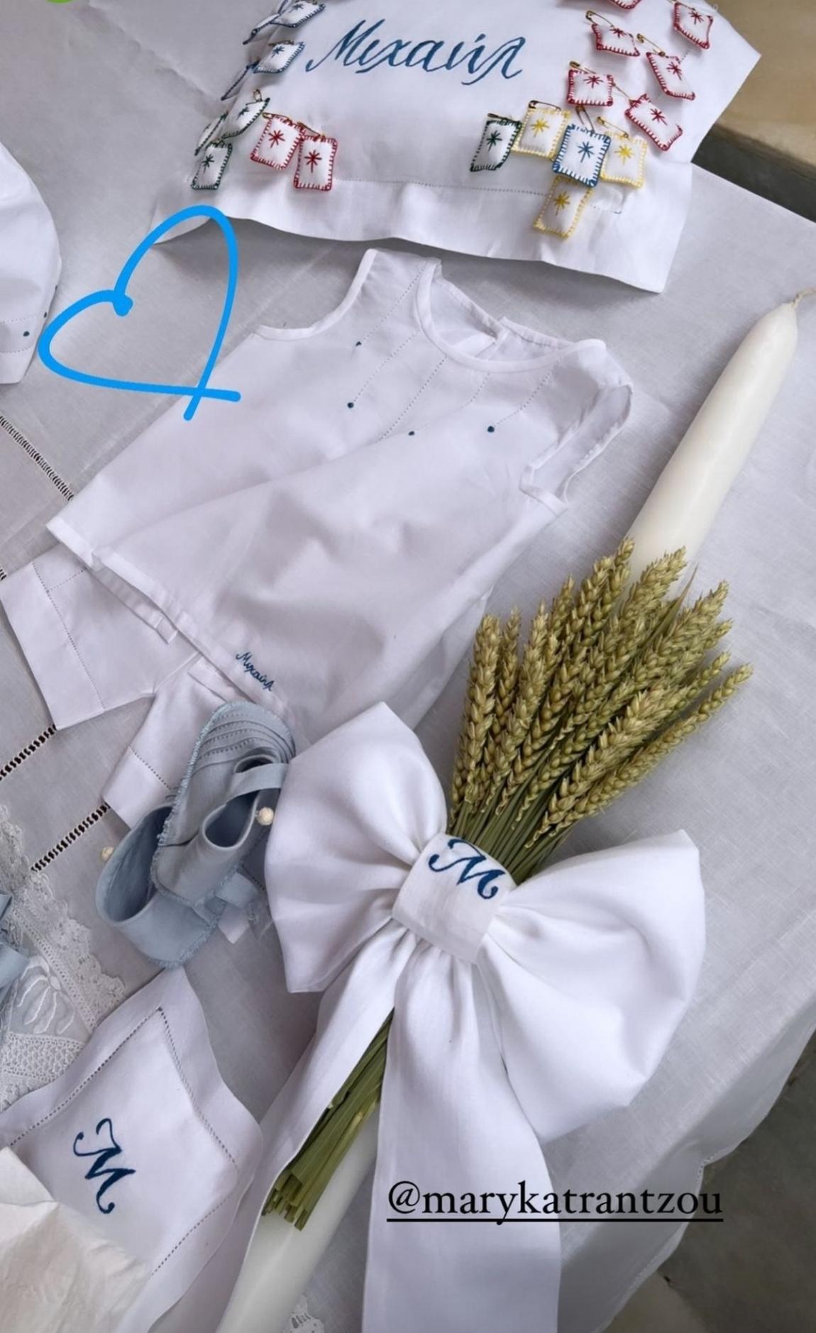 Σε ένα παραμυθένιο σκηνικό στις Σπέτσες βάπτισαν τον μονάκριβο γιο τους η Μαίρη Κατράντζου και ο Μάριος Πολίτης. Το μυστήριο τελέστηκε στον Ιερό Ναό του Αγίου Νικολάου και το 7 μηνών αγοράκι πήρε το όνομα Μιχαήλ. Νονοί του μικρού ήταν ο Παύλος Γλίξμπουργκ με τη σύζυγό του Μαρί Σαντάλ, η Ευγενία Νιάρχου και η σχεδιάστρια κοσμημάτων Sabine Getty.