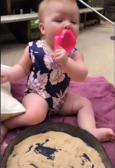 Η Elle Anna Christine, η viral μαμά, δήλωσε πως στην περιοχή που μένει δεν υπάρχουν κοντινές παραλίες. Έτσι εμπνεύστηκε την ιδέα ώστε η 7 μηνών κόρη της να μπορεί να παίξει με ασφάλεια με την άμμο και η μικρή έχει ξετρελαθεί!