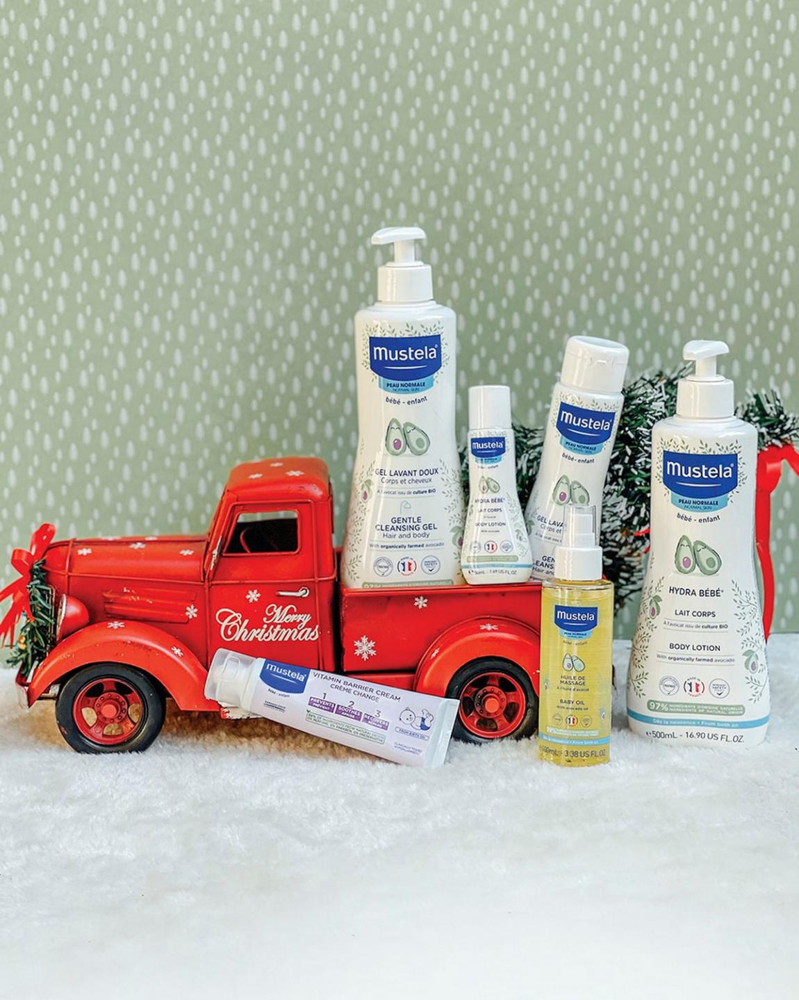 - Santa’s present: Απαλό Αφροντούς για Σώμα & Μαλλιά με Βιολογικό Αβοκάντο Gentle Cleansing Gel Mustela® 500 ml, Κρέμα Αλλαγής Πάνας Vitamin Barrier Cream 1>2>3 Mustela® 50 ml, Έλαιο μασάζ Baby Oil Mustela® 100 ml, Γαλάκτωμα σώματος Hydra Bébé® Body Lotion Mustela® 50 ml, και Δώρο ο Musti, το αρκουδάκι της Mustela®