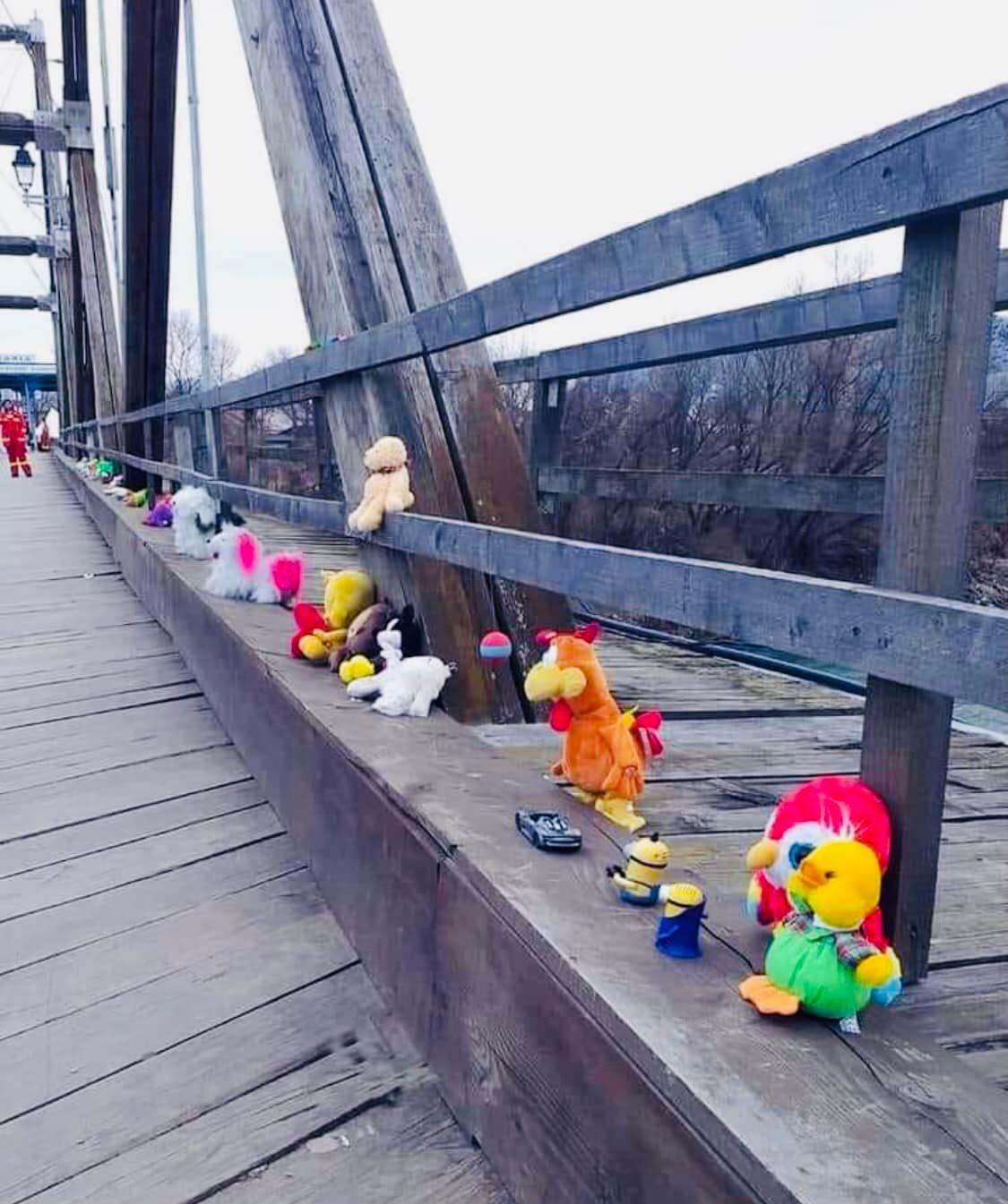 Κάθε παιδάκι που περνάει τη γέφυρα για να μπει στη Ρουμανία από την Ουκρανία, μπορεί να διαλέξει ένα από τα παιχνίδια που είναι αραδιασμένα εκεί. Ένα μικρό δώρο ώστε κάθε παιδάκι να μπει στη χώρα και να νιώσει καλοδεχούμενο.»