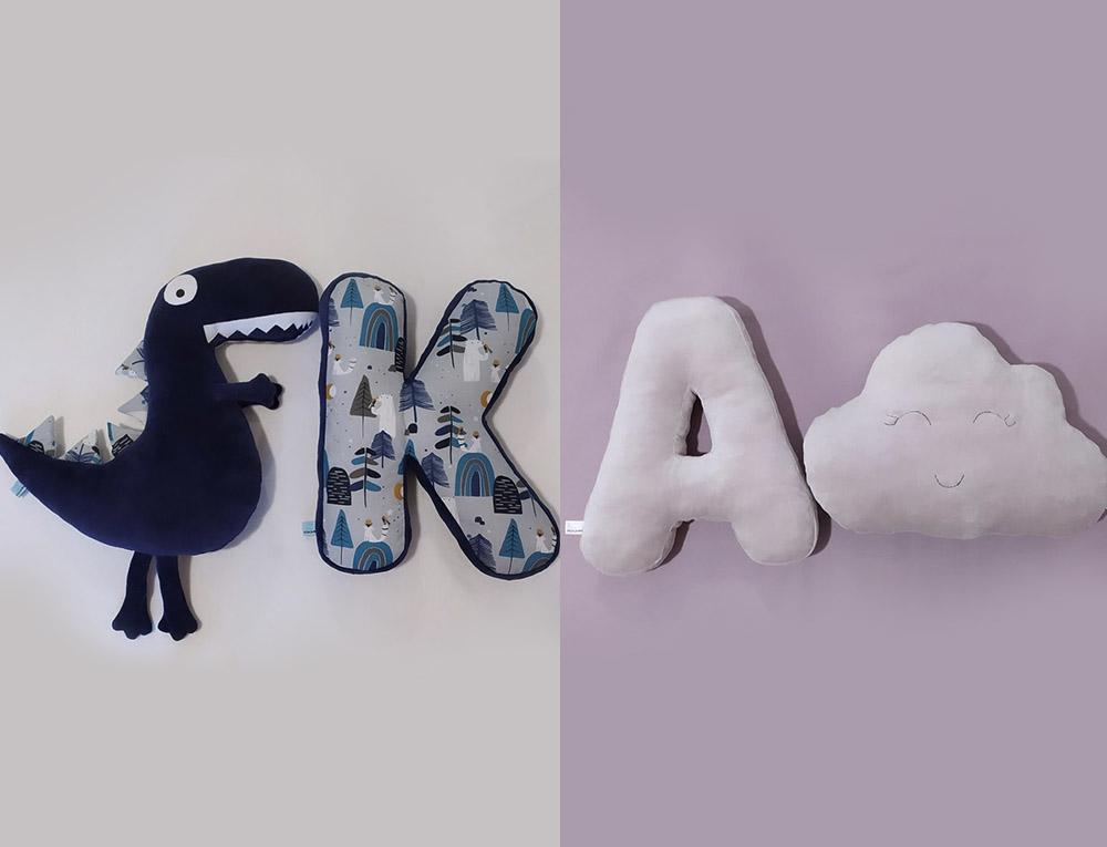 Σήμα κατατεθέν είναι φυσικά τα απαλά, βελούδινα μαξιλαρένια μονογράμματα, που έχουν ύψος 40 εκατοστά και είναι ιδανικά δώρα για κάθε περίσταση: ονομαστική γιορτή, βάπτιση, baby shower, Χριστούγεννα και Πάσχα, αλλά και χωρίς καμία αφορμή γιατί τα καλύτερα δώρα είναι αυτά που δεν περιμένουμε!