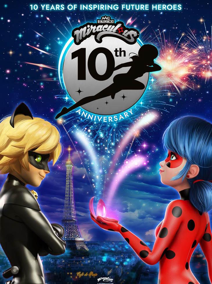 The anniversary! Πρόκειται για έναν παγκόσμιο θρίαμβο, μια σειρά που έχει κερδίσει την καρδιά μικρών και μεγάλων σε πάνω από 150 χώρες, ανάμεσά τους και η Ελλάδα, και γιορτάζει φέτος τη 10η επέτειό της! Το συναρπαστικό σύμπαν της Miraculous αιχμαλωτίζει το κοινό μέσα από CG-animated τηλεοπτικές σειρές, special τηλεοπτικά προγράμματα, ταινίες μεγάλου μήκους και ψηφιακό περιεχόμενο, καθώς και προϊόντα, παιχνίδια, εκδηλώσεις και πολλά άλλα. Και, απ’ ό,τι φαίνεται, θα εξακολουθήσει να το κάνει για πολλά χρόνια…