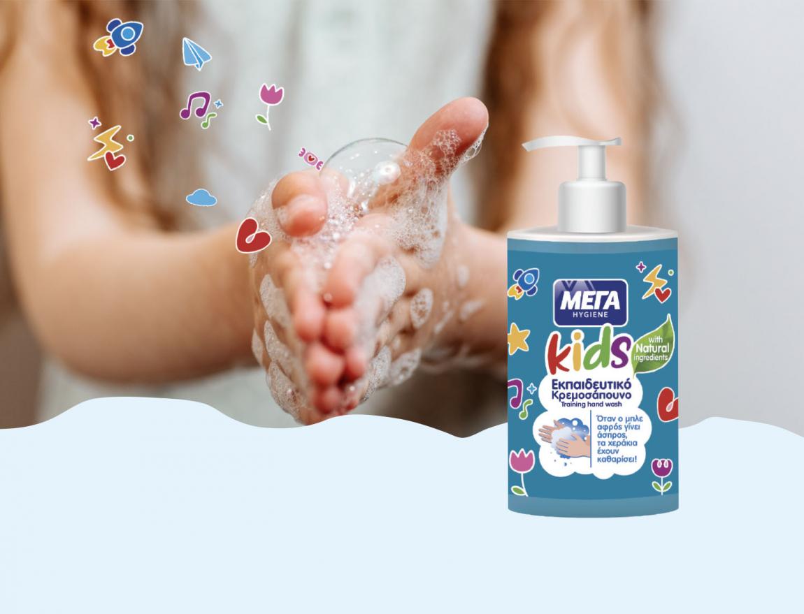 Ένα από τα πιο πολύτιμα μαθήματα που διδαχθήκαμε κατά τη διάρκεια της πανδημίας είναι η σημασία της διατήρησης της σωστής υγιεινής των χεριών. Η εκμάθηση του σωστού τρόπου πλυσίματος των χεριών από όσο το δυνατόν μικρότερη ηλικία, εξασφαλίζει υψηλή προστασία και απαντάει στην ανάγκη τήρησης των κανόνων προσωπικής υγιεινής. Πώς μαθαίνουμε όμως να πλένουμε τα χέρια μας σωστά ώστε να είναι καθαρά; Το πιο διαδεδομένο κόλπο μέχρι σήμερα ήταν να τραγουδάμε το Happy Birthday ή το Αχ, κουνελάκι και τότε ξέραμε πως η διαδικασία έχει ολοκληρωθεί σωστά. Όχι πια! Γιατί τώρα ήρθε το νέο, εκπαιδευτικό κρεμοσάπουνο της ΜΕΓΑ, που, χάρη στην καινοτόμο σύνθεσή του, αλλάζει χρώμα, από μπλε σε λευκό, όταν τα χεράκια έχουν καθαρίσει. Απίστευτο;