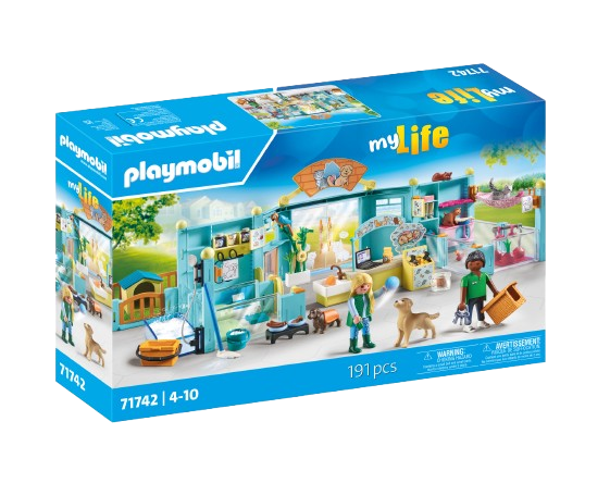 Στο PLAYMOBIL Ξενοδοχείο μικρών ζώων, κάθε επισκέπτης απολαμβάνει φροντίδα πέντε αστέρων! Με ξεχωριστούς χώρους για σκύλους, γάτες, ακόμα και έναν παιχνιδιάρη παπαγάλο, υπάρχει χώρος για όλους ώστε να νιώσουν σαν στο σπίτι τους. Οι σκύλοι μένουν σε άνετα κλουβιά και έχουν έναν σταθμό πλυσίματος με λειτουργικό ντους χειρός, ενώ οι γάτες χαλαρώνουν σε αιώρες ή κυνηγούν παιχνίδια. Οι μικροί φροντιστές μπορούν να προσαρμόσουν τις ταΐστρες με τα ονόματα που περιλαμβάνονται, να διακοσμήσουν το ξενοδοχείο όπως τους αρέσει και να περάσουν ατέλειωτες ώρες δημιουργικού παιχνιδιού!