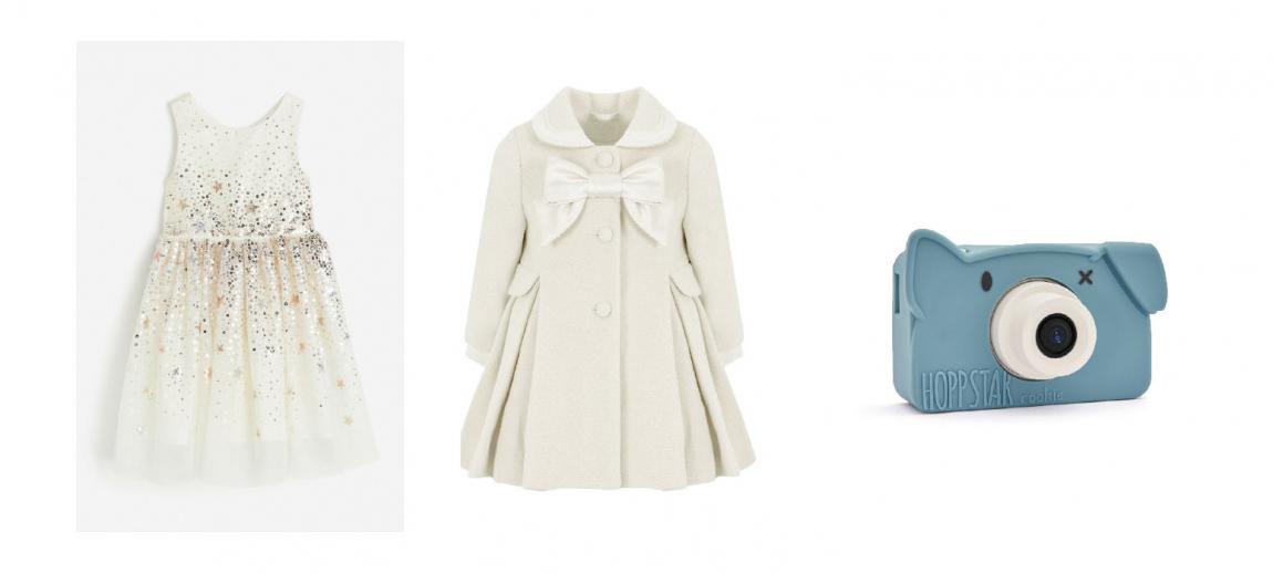 Τούλινο φόρεμα με πούλιες, H&M, www.hm.com | Παλτό με φιόγκο, Lapin House, www.lapinkids.com | Φωτογραφική κάμερα Rookie (για παιδιά 3+ ετών), Hoppstar, www.hoppstar.com
