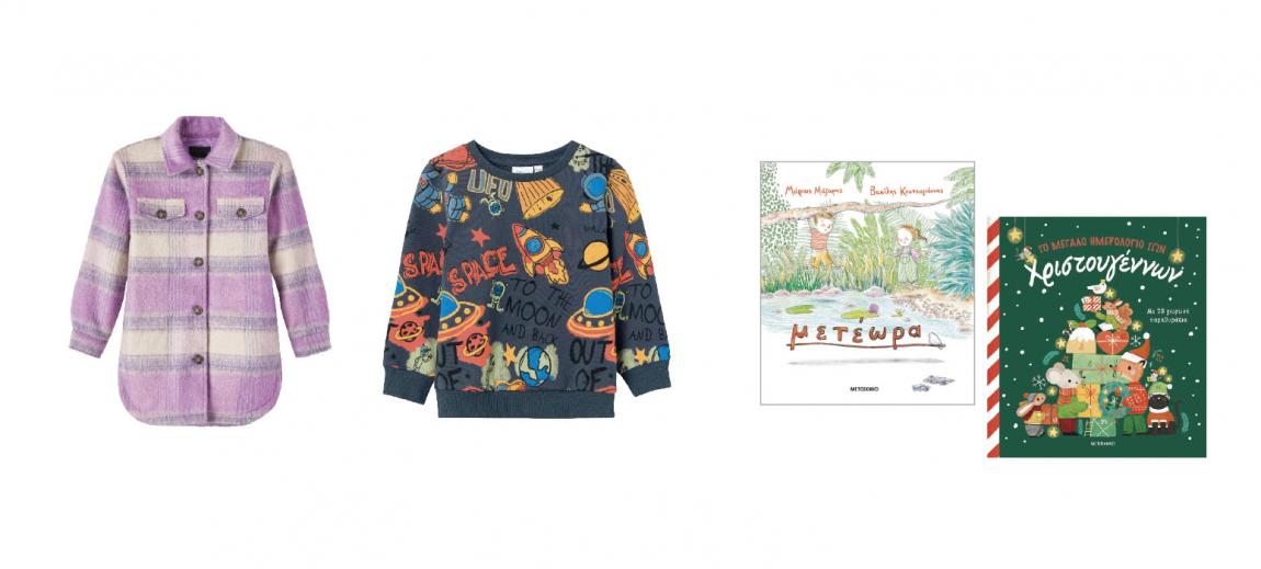 Καρό overshirt, Name It | Φούτερ με σχέδια, Name It | «μετέωρα» του Μάριου Μάζαρη, Εκδόσεις ΜΕΤΑΙΧΜΙΟ, www.metaixmio.gr | «Το μεγάλο ημερολόγιο των Χριστουγέννων», Εκδόσεις ΜΕΤΑΙΧΜΙΟ, www.metaixmio.gr