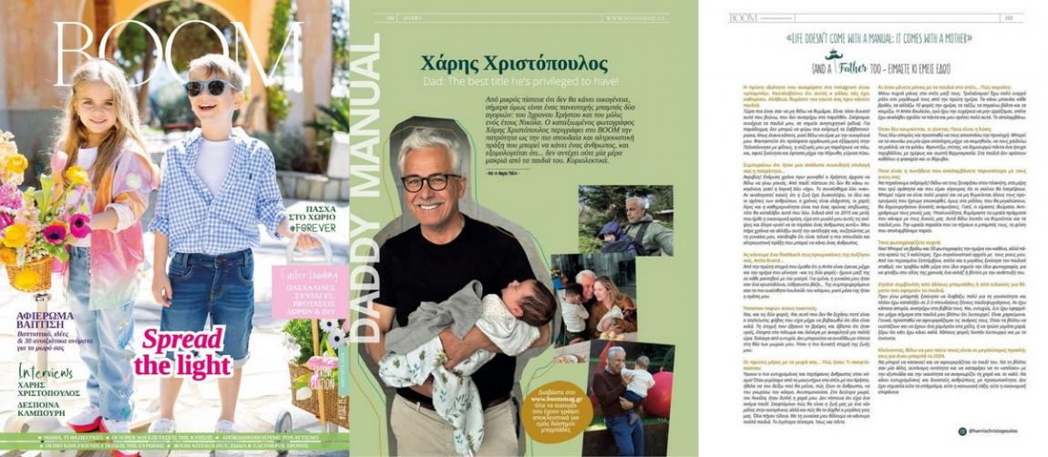 Από μικρός πίστευε ότι δεν θα κάνει οικογένεια, σήμερα όμως είναι ένας πανευτυχής μπαμπάς δύο αγοριών: του 3χρονου Χρήστου και του μόλις ενός έτους Νικόλα. Ο καταξιωμένος φωτογράφος Χάρης Χριστόπουλος περιγράφει στο BOOM την πατρότητα ως την πιο σπουδαία και αλτρουιστική πράξη που μπορεί να κάνει ένας άνθρωπος, και εξομολογείται ότι… δεν αντέχει ούτε μία μέρα μακριά από τα παιδιά του. Κυριολεκτικά.