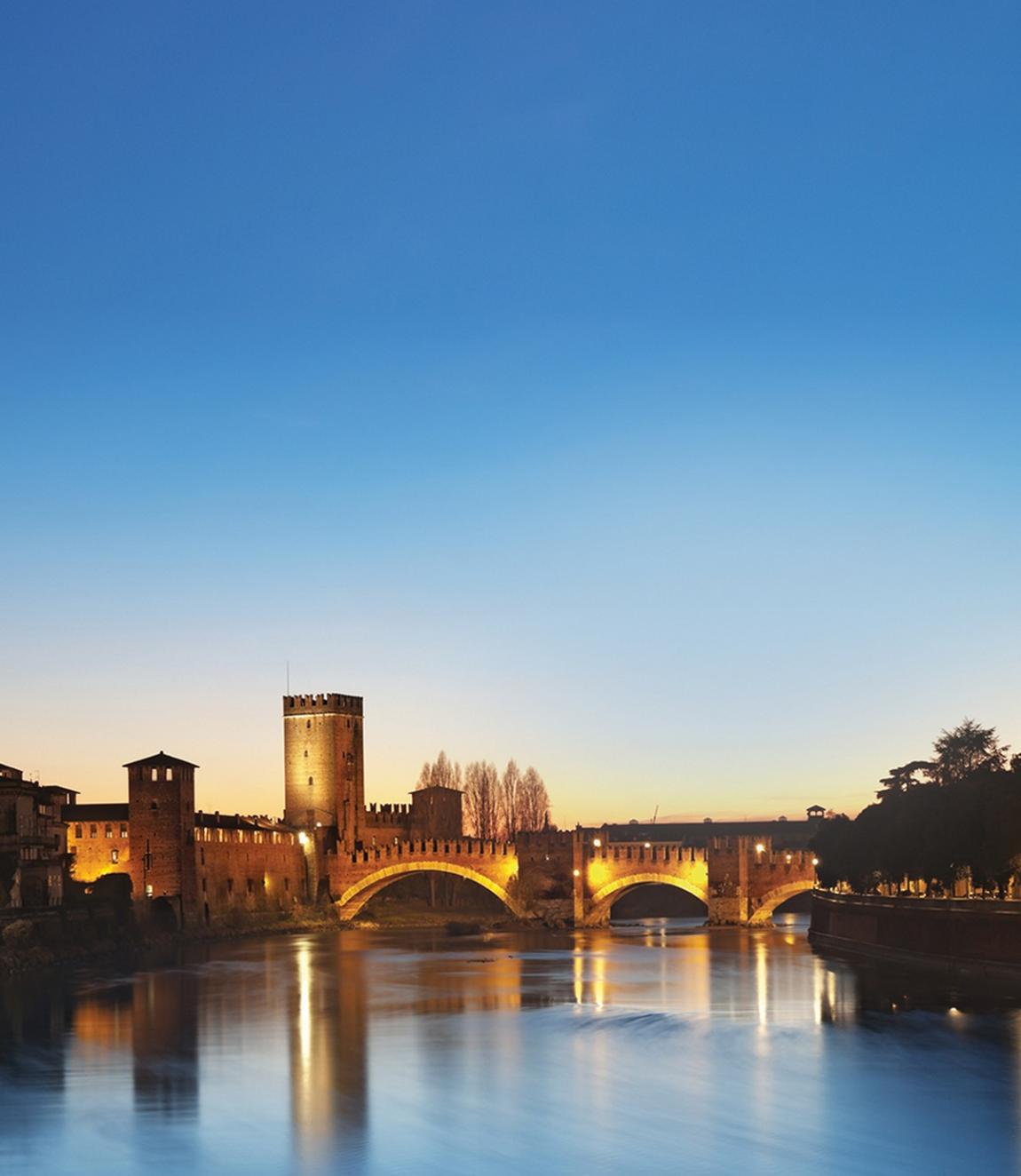- Το κάστρο Castelvecchio του 14ου αιώνα, από όπου θα ξεκινήσει η περιήγησή σας, αποτελεί εξαιρετικό δείγμα γοτθικής αρχιτεκτονικής ενώ αναστηλώθηκε πριν από σχεδόν έναν αιώνα! Είναι ένα εκτεταμένο κτιριακό συγκρότημα στο ιστορικό κέντρο της πόλης, με τεράστιο, καταπράσινο αίθριο με γλυπτά και μια εμβληματική γέφυρα πάνω από το ποτάμι του Αδίγη. Οι εσωτερικοί χώροι του είναι επισκέψιμοι, καθώς λειτουργούν σήμερα ως μουσείο έργων τέχνης που χρονολογούνται από τον Μεσαίωνα. Ακόμα, διοργανώνει και εκπαιδευτικά προγράμματα, που ταξιδεύουν τα παιδιά στη Βερόνα της εποχής των Σκαλιγκέρι, της δυναστείας που το έχτισε.