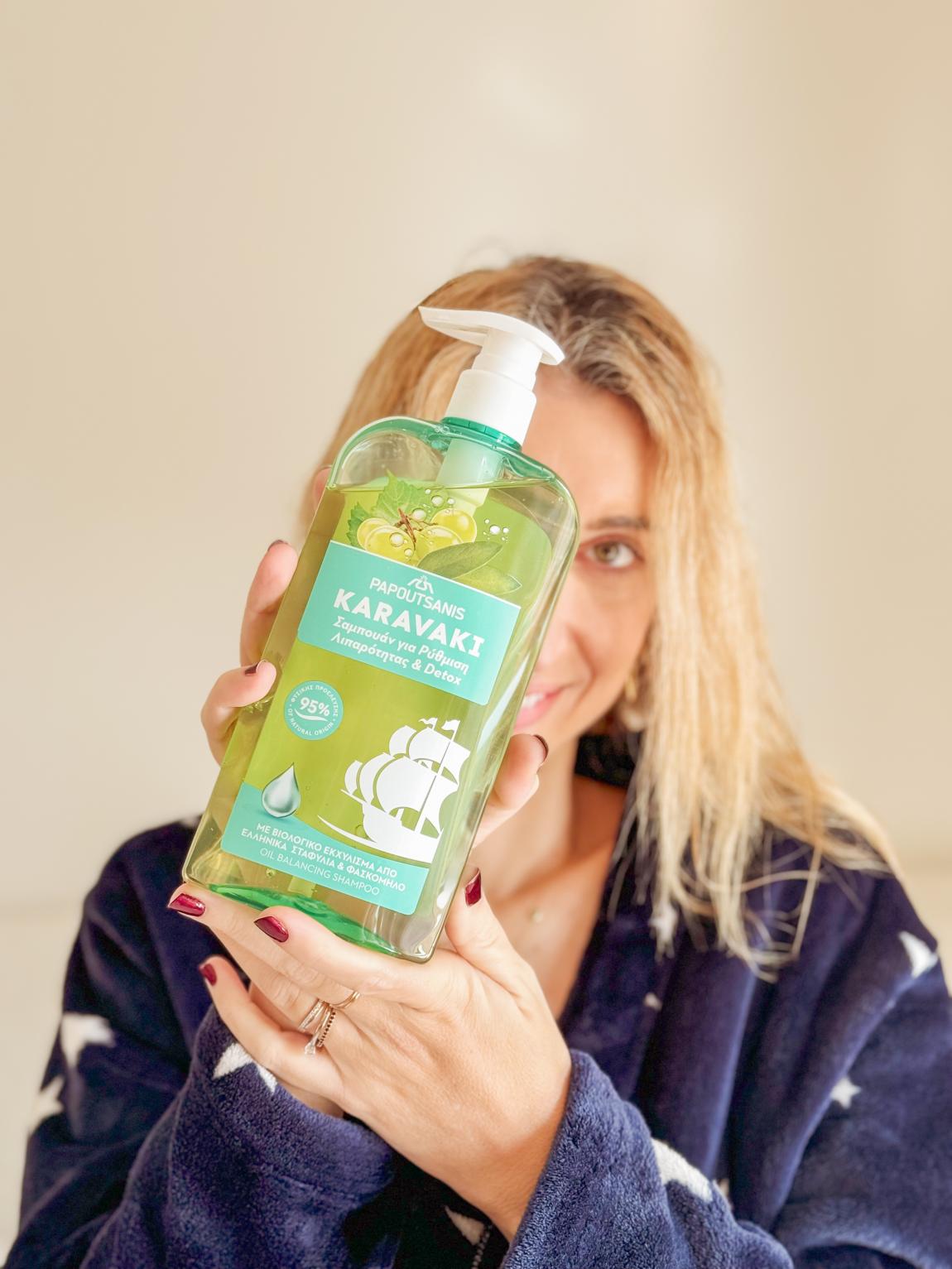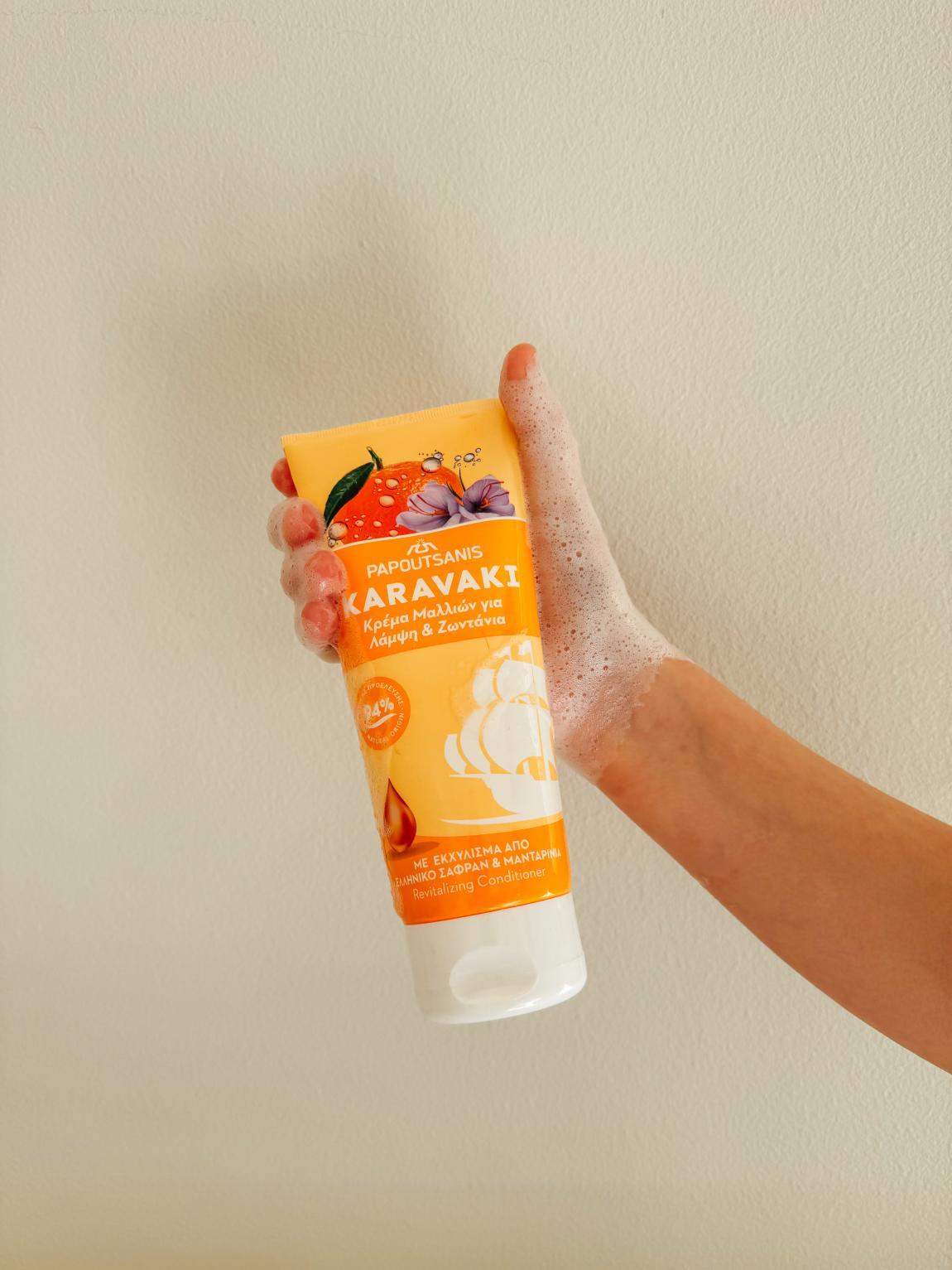 Σας προτείνω να δοκιμάσετε το νέο σαμπουάν KARAVAKI PAPOUTSANIS για Λάμψη και Ζωντάνια! Χάρη στην απαλή του σύνθεση, με 95% συστατικά φυσικής προέλευσης και ενεργή φυτική κερατίνη, ενδυναμώνει τη φυσική προστατευτική στρώση της τρίχας, διατηρώντας την ελαστικότητά της και μειώνει το φριζάρισμα. Επιπλέον, το εκχύλισμα από ελληνικό σαφράν είναι ιδιαίτερα ευεργετικό, αφήνοντας τα μαλλιά σας απαλά και λαμπερά ενώ το εκχύλισμα μανταρινιού, τα αναζωογονεί και τα ενδυναμώνει. Δεν ξέρω αν είστε έτοιμες για συγκλονιστικά μεταξένια μαλλιά!