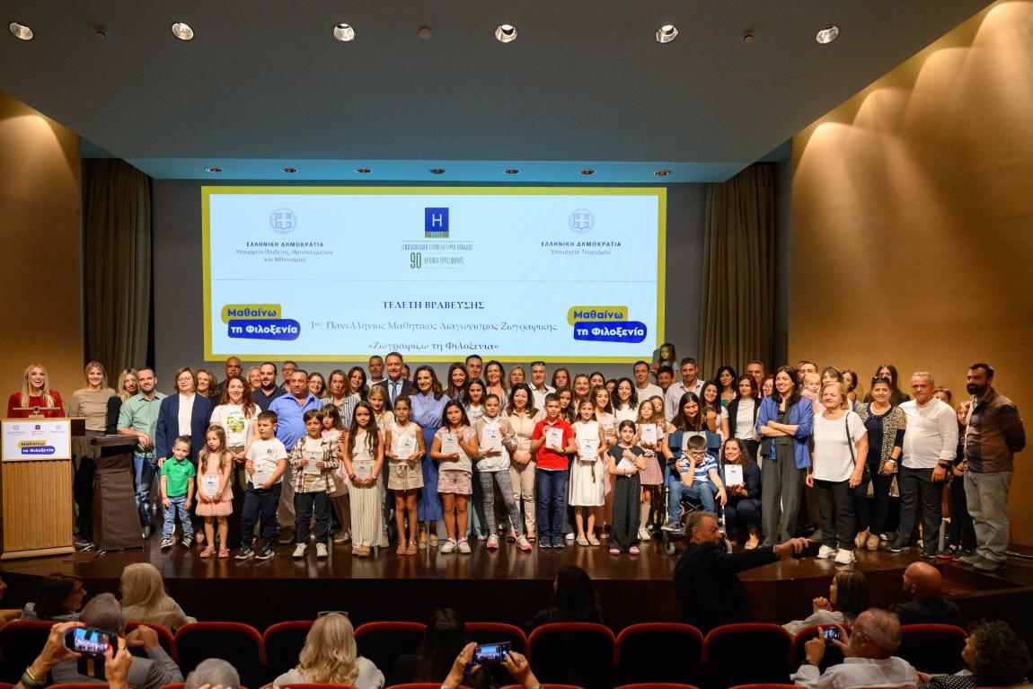 Η τελετή βράβευσης πραγματοποιήθηκε στο The Cotsen Hall, παρουσία της Υπουργού Παιδείας, Θρησκευμάτων και Αθλητισμού κ. Σοφίας Ζαχαράκη, της Υπουργού Τουρισμού κ. Όλγας Κεφαλογιάννη και του Προέδρου του Ξενοδοχειακού Επιμελητηρίου Ελλάδος κ. Αλέξανδρου Βασιλικού, οι οποίοι και απένειμαν τα βραβεία στους νικητές. Οι 18 διακριθέντες/είσες –τρεις από κάθε τάξη του Δημοτικού– ξεχώρισαν για τη φαντασία και την ευαισθησία τους με την οποία αποτύπωσαν την έννοια της φιλοξενίας στις ζωγραφιές τους. Τα έργα τους φιλοξενούνται πλέον στο ειδικό επετειακό λεύκωμα για τα 90 χρόνια του Ξενοδοχειακού Επιμελητηρίου Ελλάδας, υπενθυμίζοντας ότι η φιλοξενία είναι στάση ζωής και θεμέλιο μιας ανοιχτής κοινωνίας.