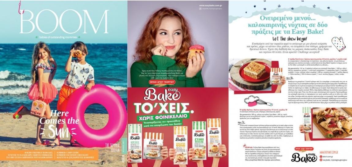 BOOM info: Τα Easy Bake δημιουργήθηκαν από τους Μύλους Αγίου Γεωργίου και είναι μία πρωτοποριακή σειρά προϊόντων, έτοιμα μείγματα με βάση το αλεύρι. Με την προσθήκη ελάχιστων υλικών που υπάρχουν στην κουζίνα σας, απολαμβάνετε στο σπίτι φρεσκοψημένες, πεντανόστιμες γλυκές ή αλμυρές λιχουδιές! Όλη η σειρά Easy Bake δεν περιέχει φοινικέλαιο.