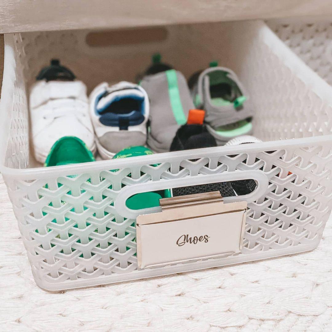 Μαζί με τα ρούχα των παιδιών είναι σημαντικό να οργανώσετε και τα παπούτσια τους, αντί να τα αφήνετε να συσσωρεύονται στον διάδρομο ή στο κάτω μέρος της ντουλάπας. Για να εξοικονομήσετε χρόνο κάθε πρωί που τα παιδιά ψάχνουν τα παπούτσια τους για να πάνε στο σχολείο, μπορείτε να δημιουργήσετε έναν ειδικά διαμορφωμένο χώρο μέσα στην ντουλάπα μόνο για παπούτσια. Η λύση και πάλι είναι τα κουτιά αποθήκευσης!