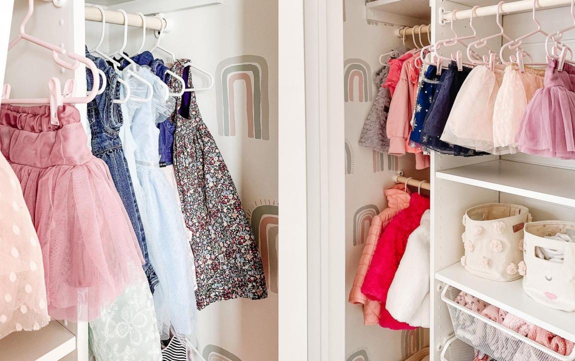 Το σημαντικό εδώ είναι να δείτε την ντουλάπα από την οπτική του παιδιού. Αν διαθέτει δύο χώρους για κρεμάστρες (έναν ψηλά και έναν χαμηλά) προτιμήστε να κρεμάσετε τα ρούχα που χρησιμοποιεί συχνότερα στο κάτω μέρος ώστε να μπορεί να τα πιάνει χωρίς τη βοήθειά σας. Στο πάνω μέρος αποθηκεύστε εκείνα που είναι εκτός εποχής ή δεν φοράει τόσο συχνά. Και μην ξεχνάτε: Χρησιμοποιήστε παιδικές κρεμάστρες και κρεμάστε τα ρούχα ανά χρώμα. Για παράδειγμα, κρεμάστε τα παντελόνια σε μπλε κρεμάστρες, τα φορέματα σε ροζ, τις μπλούζες σε πορτοκαλί και τα πανωφόρια σε κίτρινες. Τόσο απλό!