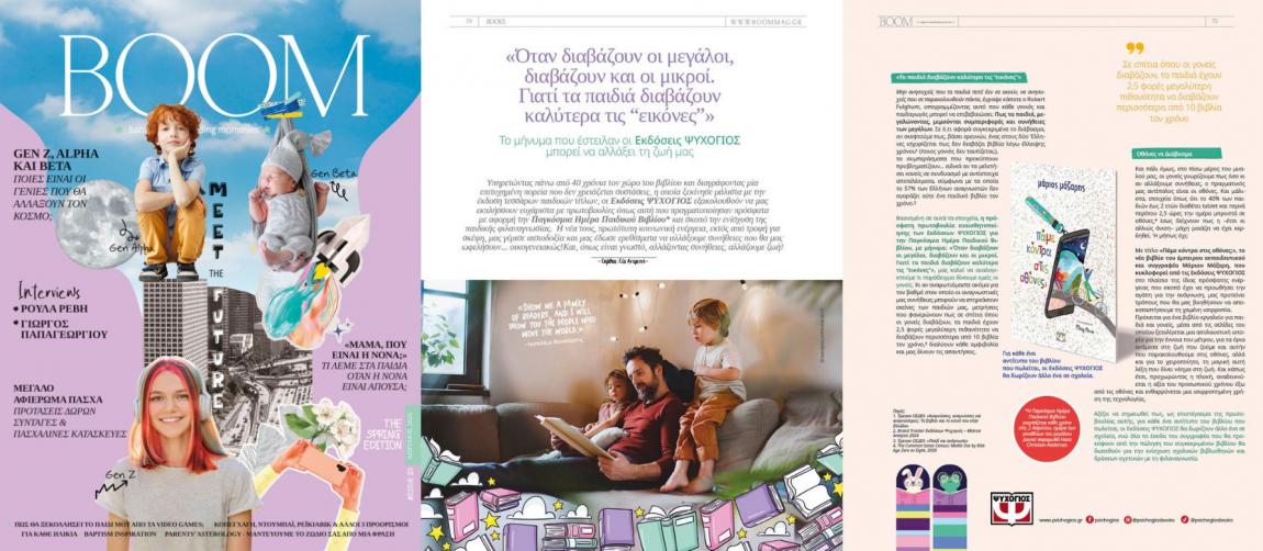 Υπηρετώντας πάνω από 40 χρόνια τον χώρο του βιβλίου και διαγράφοντας μία επιτυχημένη πορεία που δεν χρειάζεται συστάσεις, η οποία ξεκίνησε μάλιστα με την έκδοση τεσσάρων παιδικών τίτλων, οι Εκδόσεις ΨΥΧΟΓΙΟΣ εξακολουθούν να μας εκπλήσσουν ευχάριστα με πρωτοβουλίες όπως αυτή που πραγματοποιούν με αφορμή την Παγκόσμια Ημέρα Παιδικού Βιβλίου* και σκοπό την ενίσχυση της παιδικής φιλαναγνωσίας. Η νέα τους, πρωτότυπη κοινωνική ενέργεια, εκτός από τροφή για σκέψη, μας γέμισε αισιοδοξία και μας έδωσε ερεθίσματα να αλλάξουμε συνήθειες που θα μας ωφελήσουν... οικογενειακώς! Και, όπως είναι γνωστό, αλλάζοντας συνήθειες, αλλάζουμε ζωή!