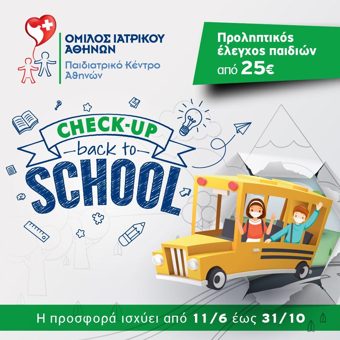 Με αφορμή την έναρξη της περιόδου των εγγραφών, για τη νέα σχολική χρονιά, το Παιδιατρικό Κέντρο Αθηνών προσφέρει ένα ολοκληρωμένο πακέτο εξετάσεων προληπτικού ελέγχου για παιδιά σε ειδική, μειωμένη τιμή. Να λοιπόν κάτι που αξίζει να κάνουμε στα παιδιά μας πριν φύγουμε για διακοπές!