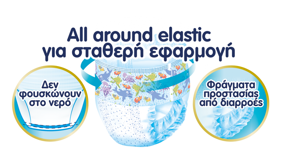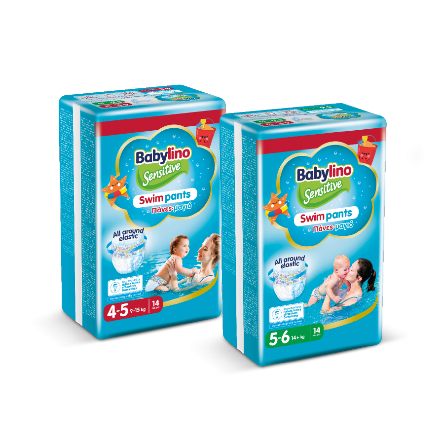 Οι πάνες-μαγιό Babylino Sensitive Swim Pants, μιας χρήσης, συγκεντρώνουν όλα τα πλεονεκτήματα μιας πάνας και ενός μαγιό και εμπνέουν για ατέλειωτο παιχνίδι στο νερό. Χάρη στην τεχνολογία «all around elastic» προσφέρουν 360⁰ ελαστικότητα και εφαρμόζουν τέλεια και στη μεσούλα και στα ποδαράκια, ώστε να μην «κρεμούν» όταν βραχούν.