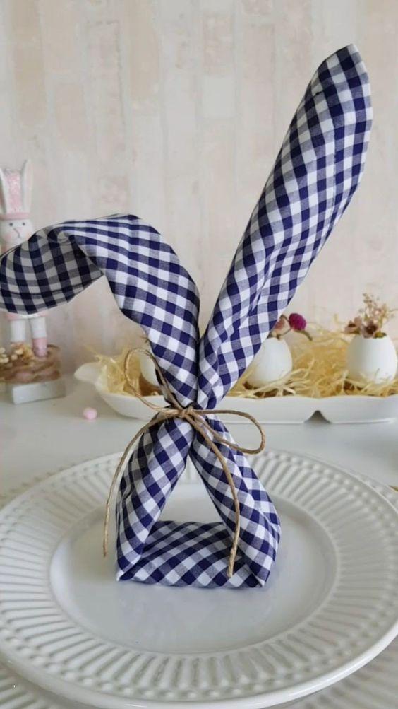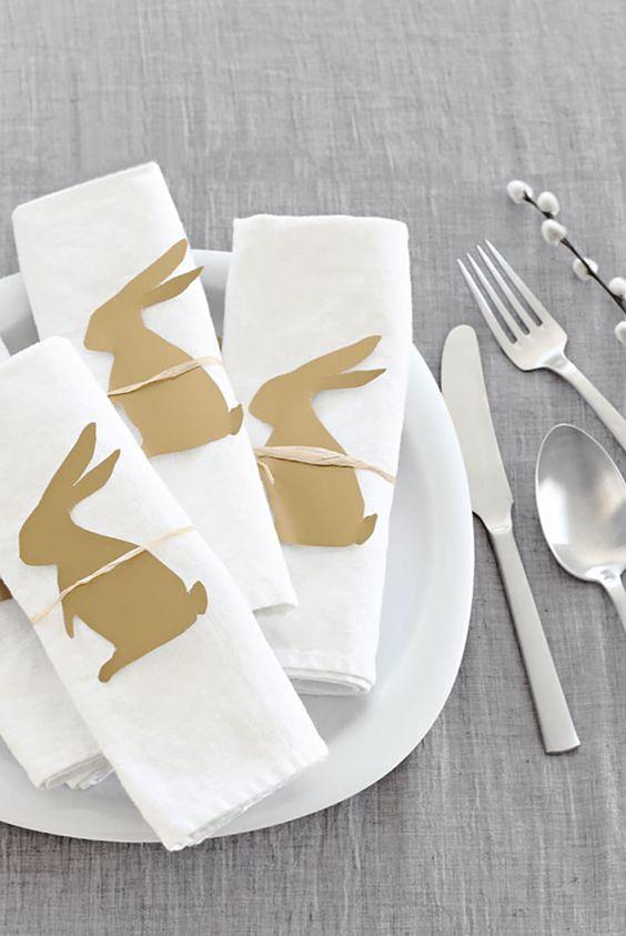 Easter bunny: The minimal edition! Τι θα χρειαστείτε; Πασχαλινά αυγά, υφασμάτινες πετσέτες φαγητού (μπορείτε να κάνετε συνδυασμό χρωμάτων) και σπάγκο. Αν προλάβετε να έχετε προμηθευτεί και μικρά μονογράμματα των καλεσμένων σας έχει καλώς, διαφορετικά μπορούν να τα φτιάξουν και τα παιδιά με χαρτόνι. (Αν δεν έχετε υφασμάτινες πετσέτες χρησιμοποιήστε τις κλασικές!)