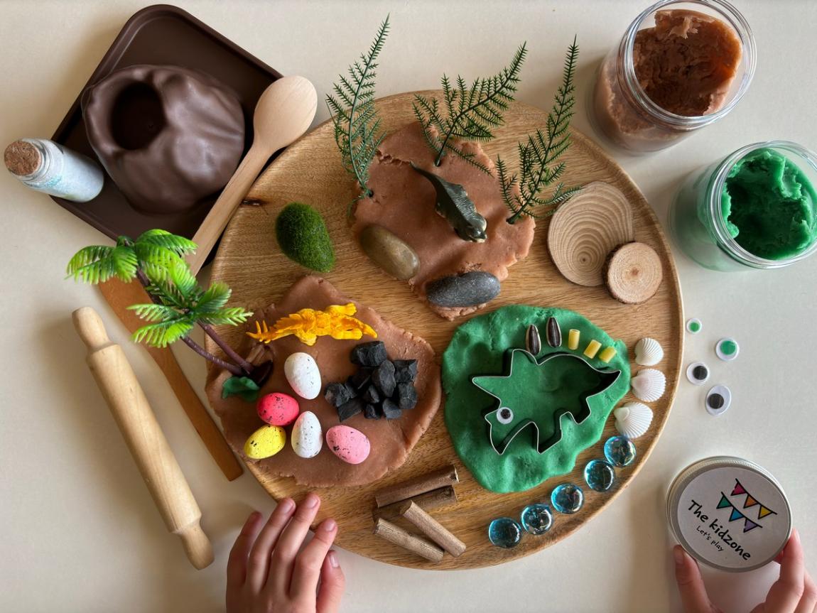#2 Μήπως το παιδί σας τρελαίνεται για δεινόσαυρους; Τότε φανταστείτε τον ενθουσιασμό του όταν ανοίξει το Ηandmade Friendosaurus Play Kit*. Τα παιδιά θα διαμορφώσουν τη δική τους γη των δεινοσαύρων με διάφορα φυσικά στοιχεία, θα δουν από κοντά ένα ηφαίστειο, θα συγκρίνουν πατημασιές και θα φτιάξουν τους δικούς τους δεινόσαυρους, ενώ παράλληλα θα εξερευνήσουν διαφορετικές υφές χρησιμοποιώντας φυσικά εργαλεία. Το play kit διατίθεται σε δύο μεγέθη, normal και travel, και περιέχει τις χειροποίητες αισθητηριακές πλαστελίνες του the.kidzone.gr, φυσικά δύο φιγούρες δεινοσαύρων και πολλά ακόμα εντυπωσιακά πράγματα, όπως μια μικρογραφία ηφαιστείου και ένα σακουλάκι με μαγική σκόνη που αναβλύζει! (Δείτε στο the.kidzone.gr αναλυτικά τι περιέχουν τα συγκεκριμένα κουτιά*.)