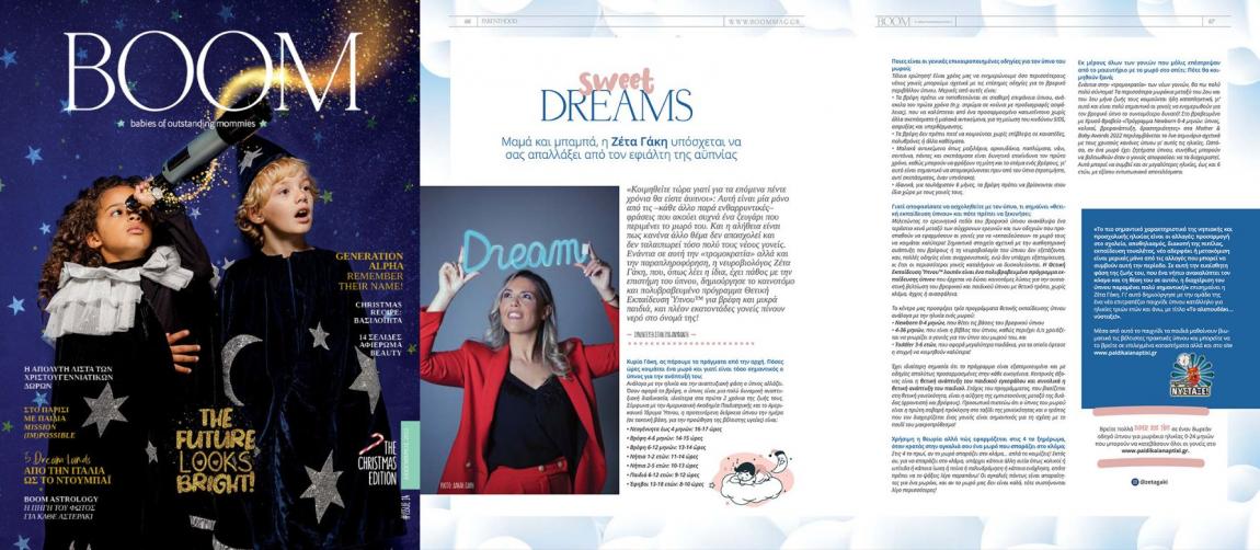 «Κοιμηθείτε τώρα γιατί για τα επόμενα πέντε χρόνια θα είστε άυπνοι»: Αυτή είναι μία μόνο από τις –κάθε άλλο παρά ενθαρρυντικές– φράσεις που ακούει συχνά ένα ζευγάρι που περιμένει το μωρό του. Και η αλήθεια είναι πως κανένα άλλο θέμα δεν απασχολεί και δεν ταλαιπωρεί τόσο πολύ τους νέους γονείς. Ενάντια σε αυτή την «τρομοκρατία» αλλά και την παραπληροφόρηση, η νευροβιολόγος Ζέτα Γάκη, που, όπως λέει η ίδια, έχει πάθος με την επιστήμη του ύπνου, δημιούργησε το καινοτόμο και πολυβραβευμένο πρόγραμμα Θετική Εκπαίδευση Ύπνου™ για βρέφη και μικρά παιδιά, και πλέον εκατοντάδες γονείς πίνουν νερό στο όνομά της!