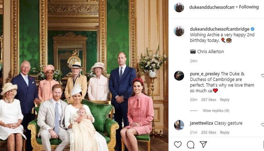 Στις 6 Μαΐου 2021 ο μικρός Άρτσι, γιος της Μέγκαν Μαρκλ και του πρίγκιπα Χάρι, έγινε δύο ετών. Σύσσωμη η βασιλική οικογένεια έσπευσε να του ευχηθεί και από τα social media account.