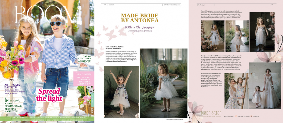 Αν λοιπόν παντρεύεστε και θέλετε να κάνετε την πιο εντυπωσιακή mother-daughter εμφάνιση, αν ετοιμάζετε τη βάπτιση της μικρής σας ή αν αναζητάτε ένα παιδικό φόρεμα για μια ξεχωριστή περίσταση, τότε δεν έχετε παρά να επισκεφθείτε το ατελιέ Made Bride by Antonea.