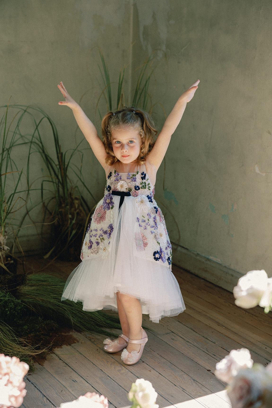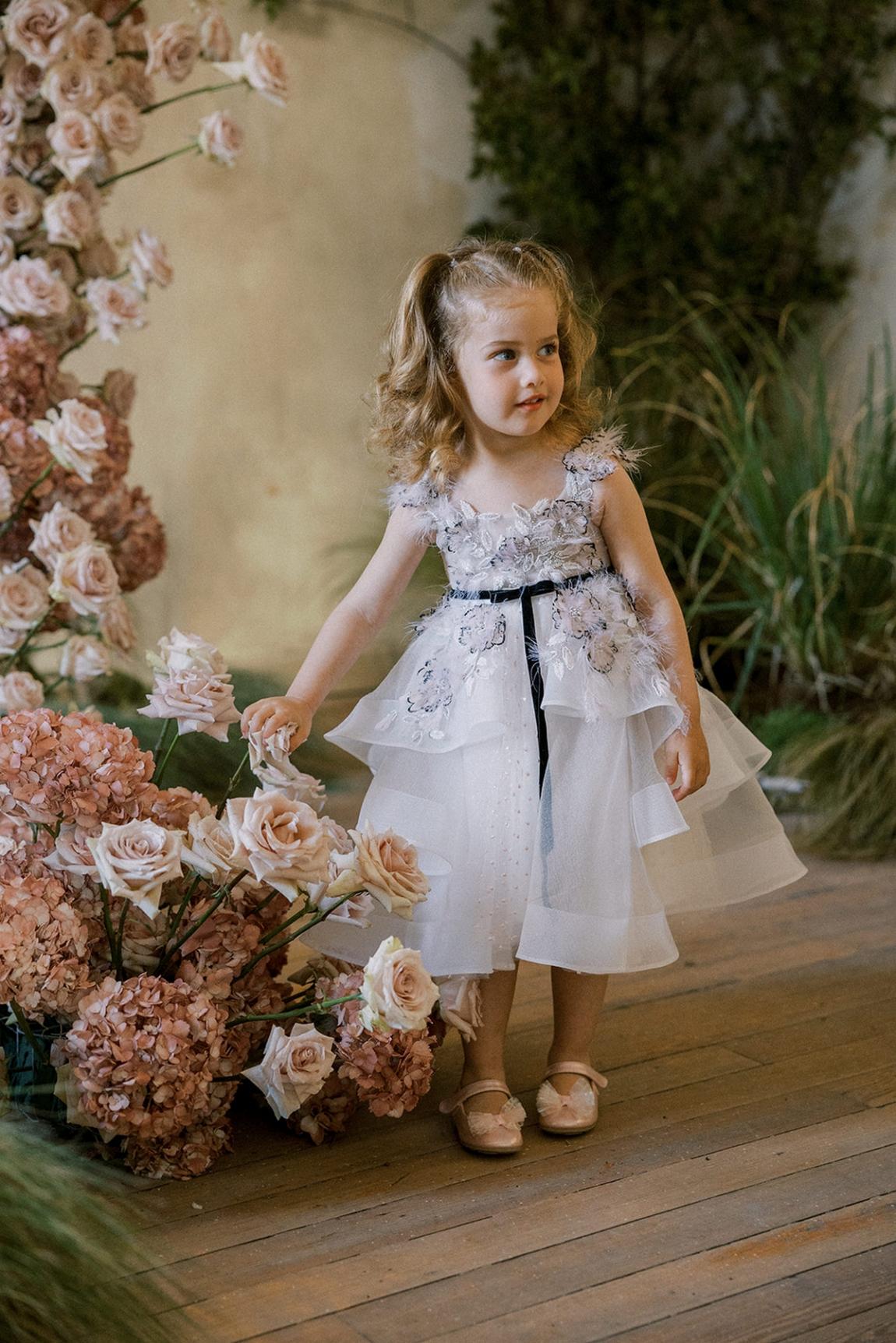 Πολυτελή υφάσματα μετατρέπονται σε άνετα και αέρινα παιδικά φορέματα, που διακοσμούνται με τρισδιάστατα λουλούδια, φτερά και άλλα statement items, με εξαιρετικά κομψούς, λεπτεπίλεπτους φιόγκους και περίτεχνα κεντημένα μοτίβα σε παστέλ αποχρώσεις, αλλά και στους πιο τολμηρούς και ζωηρούς χρωματικούς συνδυασμούς.