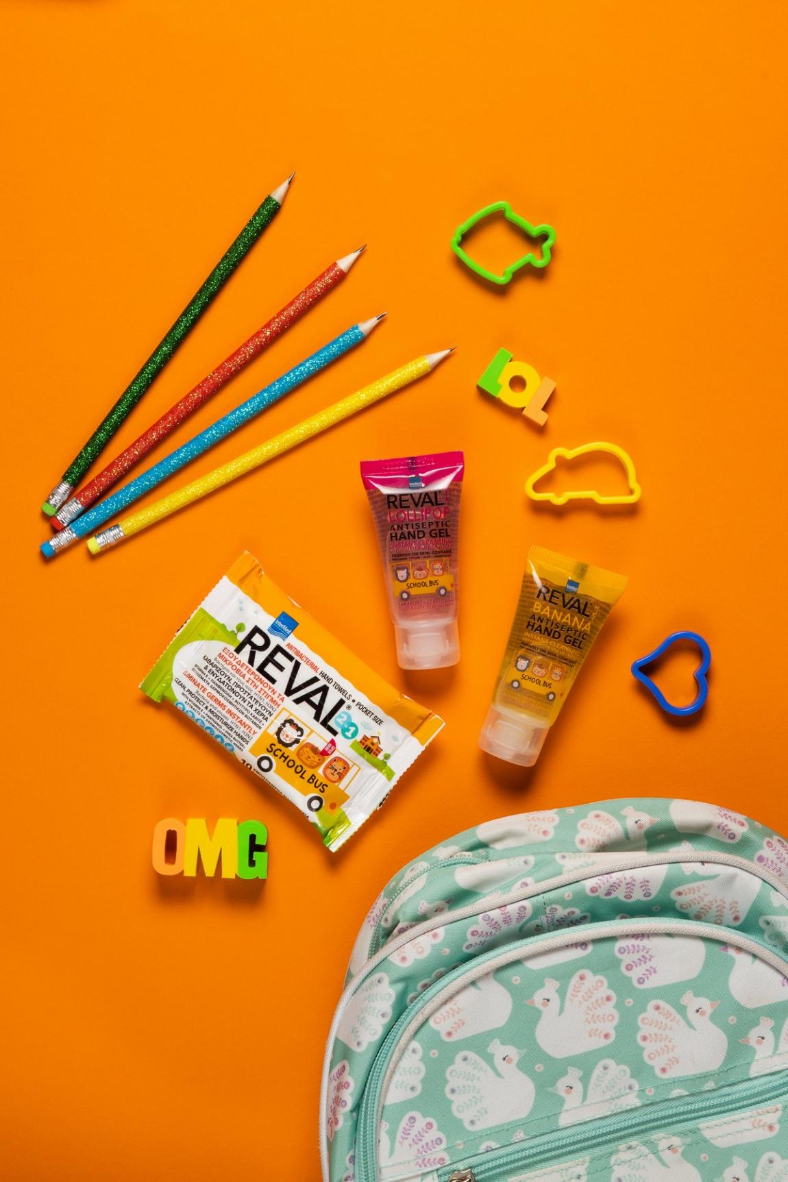 1. Τα αντιβακτηριδιακά μαντηλάκια χεριών Reval School Bus, που εξουδετερώνουν στη στιγμή τα βακτήρια και τους ιούς H1N1 και H3N2 ενυδατώνουν τα χεράκια χάρη στη σύνθεσή τους με βιταμίνη Ε, πανθενόλη, βούτυρο καριτέ και εκχυλίσματα δερμοκοσμητικών βοτάνων.