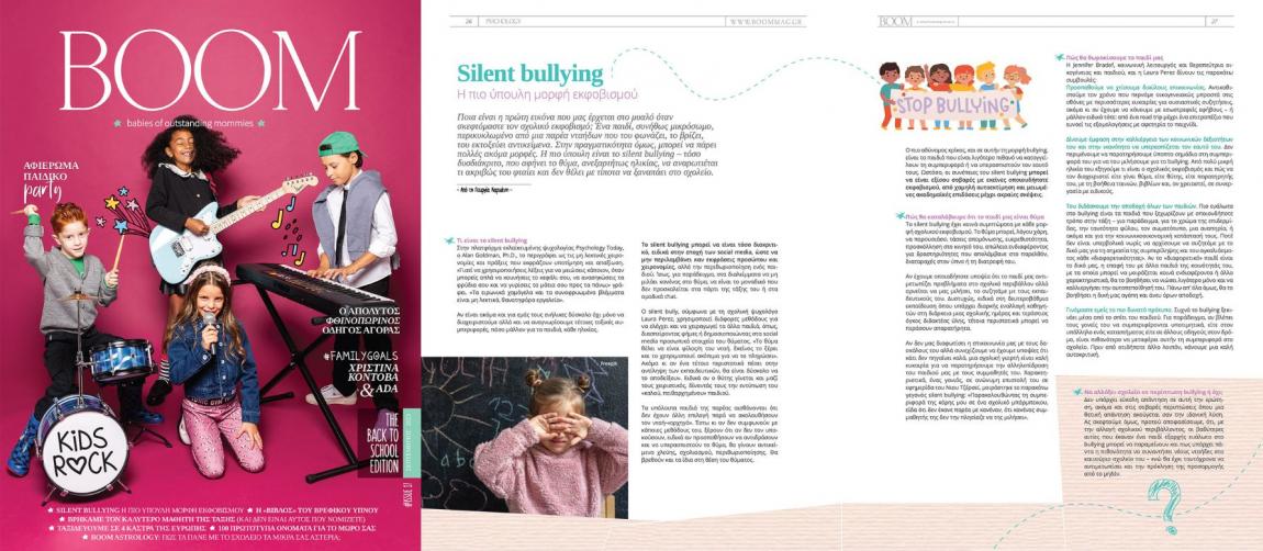 Ποια είναι η πρώτη εικόνα που μας έρχεται στο μυαλό όταν σκεφτόμαστε τον σχολικό εκφοβισμό; Ένα παιδί, συνήθως μικρόσωμο, περικυκλωμένο από μια παρέα νταήδων που του φωνάζει, το βρίζει, του εκτοξεύει αντικείμενα. Στην πραγματικότητα όμως, μπορεί να πάρει πολλές ακόμα μορφές. Η πιο ύπουλη είναι το silent bullying – τόσο δυσδιάκριτο, που αφήνει το θύμα, ανεξαρτήτως ηλικίας, να αναρωτιέται τι ακριβώς του φταίει και δεν θέλει με τίποτα να ξαναπάει στο σχολείο.