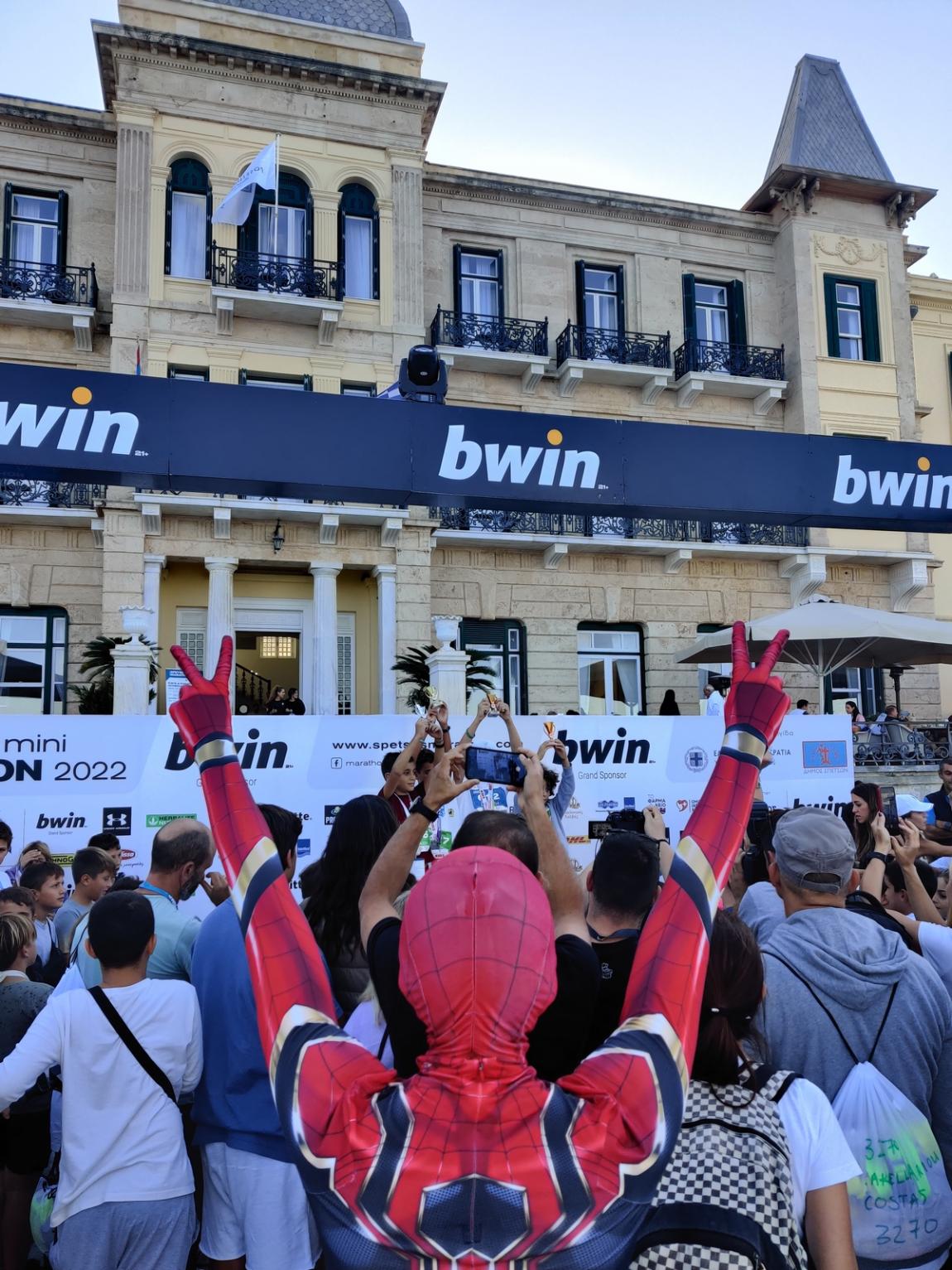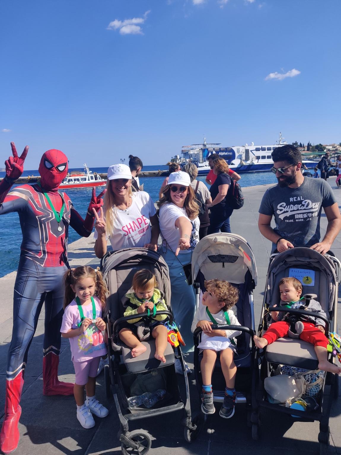 Το ραντεβού με τους λιλιπούτειους δρομείς έως 5 ετών και τους γονείς τους για το My 1st Spetses Mini Marathon δόθηκε το μεσημέρι στο ξενοδοχείο Nissia, εκεί όπου συνάντησαν ξανά τον αγαπημένο τους ήρωα και φωτογραφήθηκαν μαζί του, φορώντας t-shirts και βρεφικά φορμάκια με το logo της βρεφικής και παιδικής σειράς περιποίησης BabyDerm της Intermed που ήταν χορηγός της μεγάλης αθλητικής διοργάνωσης. Μάλιστα, τους επεφύλασσε μία ακόμη έκπληξη, καθώς έτρεξε μαζί τους μέχρι τη γραμμή του τερματισμού στην πλατεία Ποσειδωνίου. Ανάμεσα στους γονείς που έτρεξαν με τα μικρά τους ήταν και η Κλέλια με την Άννη Πανταζή, καθώς και η Χριστίνα Κοντοβά με την κόρη της, Ada.