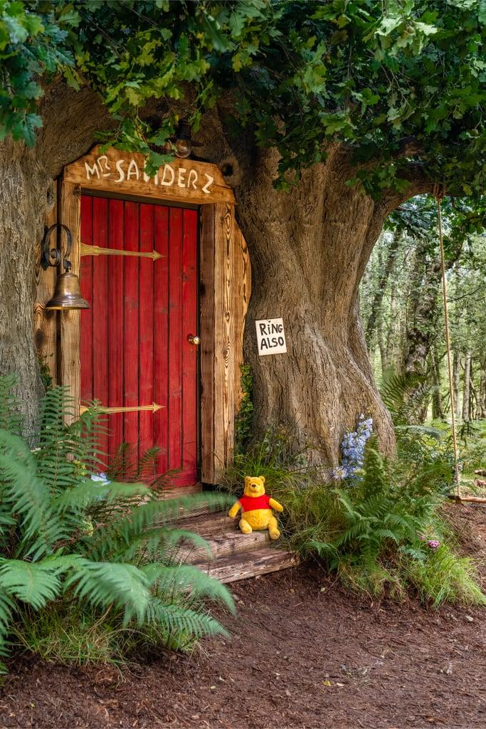 Το χαριτωμένο σπίτι βρίσκεται στο δάσος Ashdown της Αγγλίας, το οποίο αποτέλεσε έμπνευση για τον συγγραφέα A.A. Milne, και περιλαμβάνει χαρακτηριστικές αναφορές στο πρωτότυπο παραμύθι του Winnie the Pooh. Απλώς κοιτάξτε την παιχνιδιάρικη ταπετσαρία! Ακόμη και η πόρτα έχει την κλασική επιγραφή "Mr. Sanders", ενώ στα ντουλάπια της κουζίνας υπάρχουν τεράστια δοχεία με μέλι.