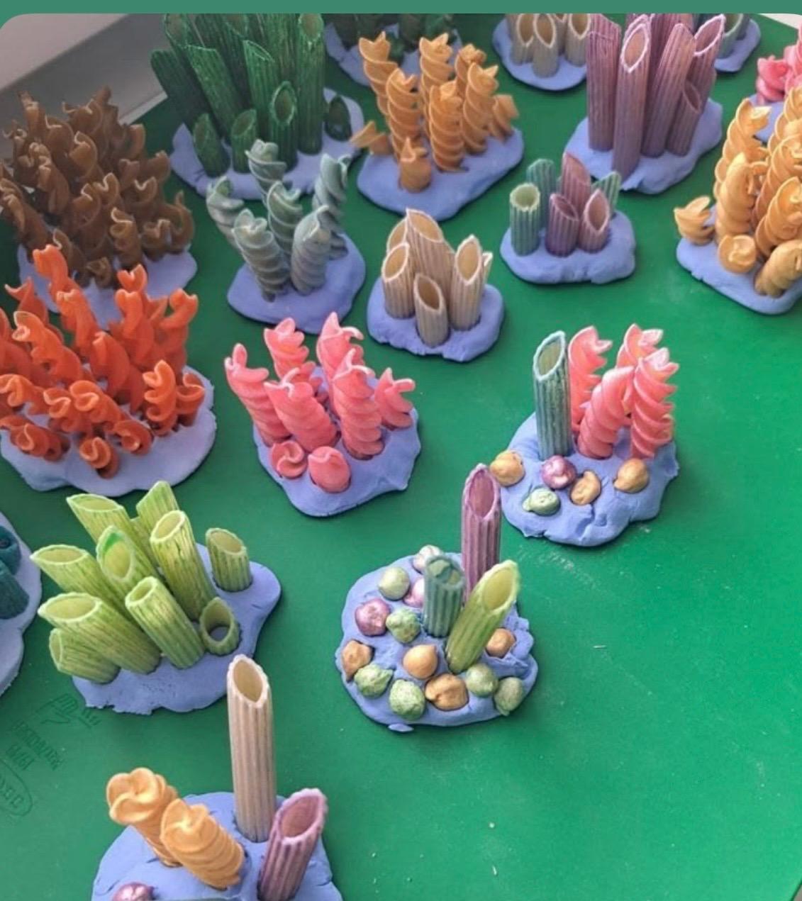 Αυτή τη φορά, η Σοφία Παπαφάνη και η Δώρα Χαρατσάρη, δημιουργοί του Κέντρου Ειδικής Αγωγής Λογοcare, μαζί με τους έμπειρους συνεργάτες τους, καλούν τα παιδιά σε μια δημιουργική... «βουτιά» στον βυθό, όπου θα φτιάξουν τον δικό τους κοραλλιογενή ύφαλο! Πώς; Με τη φαντασία τους και χρησιμοποιώντας απλά υλικά, όπως πλαστελίνη, πηλό και μακαρόνια, που θα τα μετατρέψουν σε έναν πολύχρωμο θαλάσσιο μικρόκοσμο.