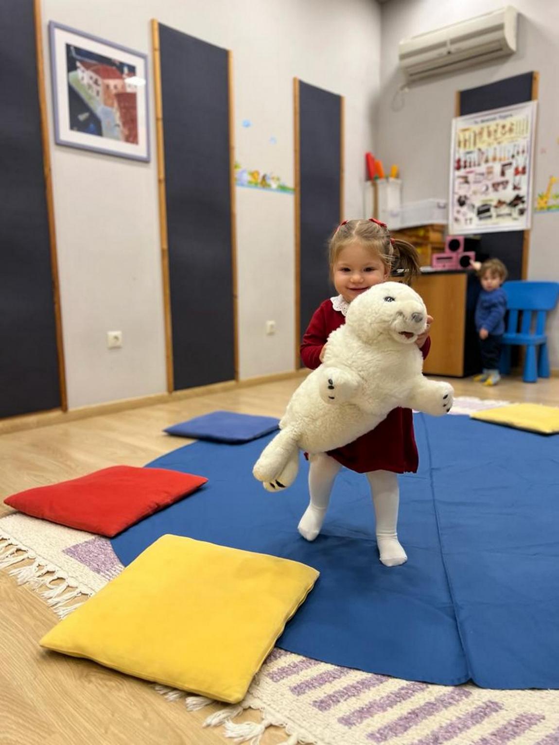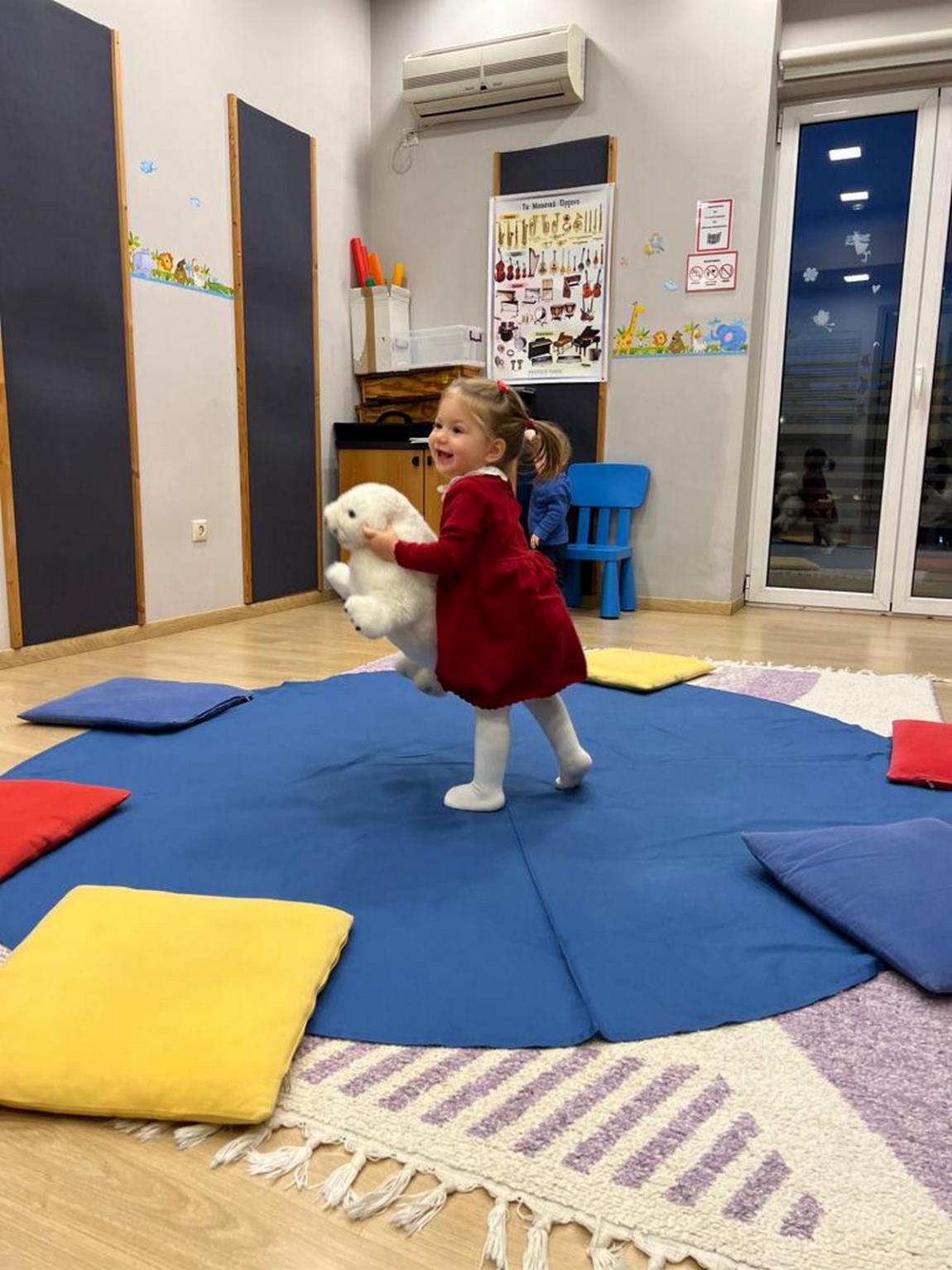 Τα μέλη της ομάδας «Teddy» διασκεδάζουν, συνεργάζονται, υπακούουν σε κανόνες, προχωρούν με άνεση και ταχύτητα από το ένα στάδιο ανάπτυξης στο επόμενο και προσαρμόζονται ευκολότερα στην «οικογένεια» του παιδικού σταθμού. Από την τρυφερή αυτή ηλικία γνωρίζουν, αφομοιώνουν και αγαπούν τη μουσική. Και ποια μαμά δεν το θέλει αυτό για το παιδί της;! Το μάθημα περιλαμβάνει ομαδικό τραγούδι, παιχνίδι, μουσικές ακροάσεις και κίνηση.