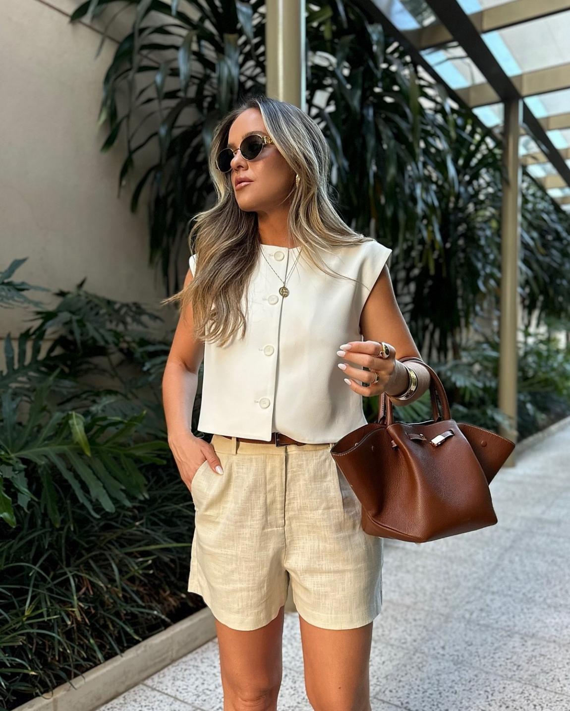 Συνδυάστε το λινό σορτς με ένα vest top και ετοιμαστείτε να δεχθείτε τα πιο κολακευτικά σχόλια. Αν είστε fan του minimal style διατηρήστε όλο το look σε γήινες αποχρώσεις, διαφορετικά «παίξτε» με τα αξεσουάρ επιλέγοντας τσάντα, παπούτσια και κοσμήματα σε φούξια, μπλε ελεκτρίκ ή έντονο πράσινο.
