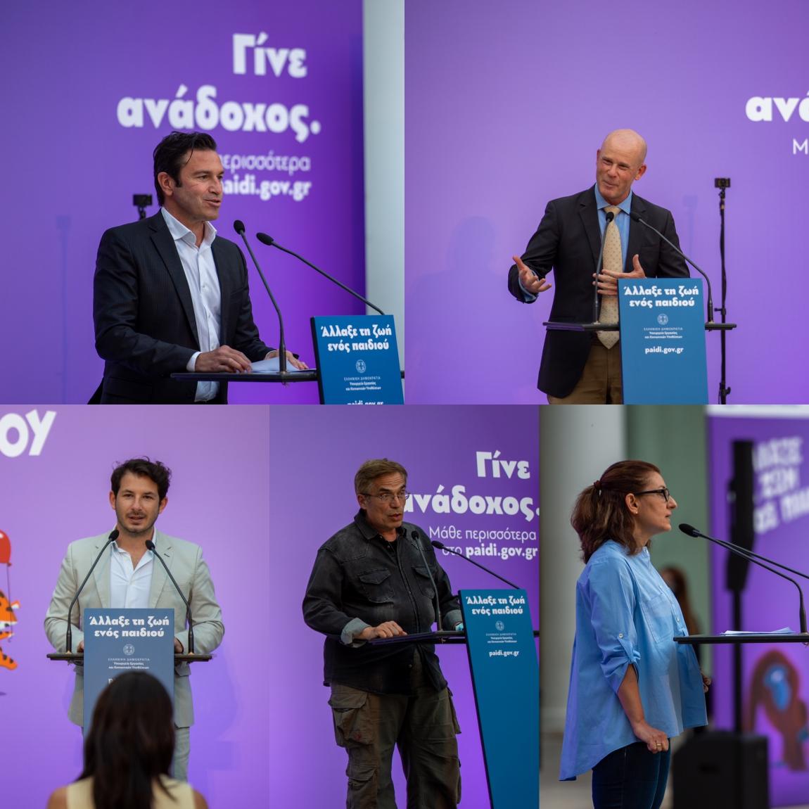 Πρεσβευτές του νέου θεσμού της Αναδοχής θα είναι σε πρώτη φάση τρεις καταξιωμένοι Έλληνες καλλιτέχνες με έντονο κοινωνικό αποτύπωμα, η Ελεονώρα Ζουγανέλη, ο Μάριος Φραγκούλης και ο Γιώργος Περρής. Την εκδήλωση χαιρέτησε ο Επικεφαλής της UNICEF στην Ελλάδα Luciano Calestini.