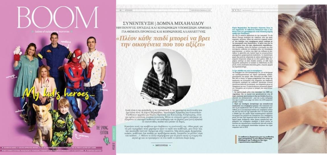 Αυτή είναι η πιο αισιόδοξη, η πιο ουσιαστική, η πιο χαρούμενη συνέντευξη που έχω κάνει ποτέ. Η Δόμνα Μιχαηλίδου, Υφυπουργός Εργασίας και Κοινωνικών Υποθέσεων αρμόδια για θέματα Πρόνοιας και Κοινωνικής Αλληλεγγύης, είναι για εμένα η απόλυτη γυναίκα-έμπνευση. Μέσα σε ελάχιστο χρόνο κατάφερε να εξυγιάνει το σύστημα υιοθεσιών και αναδοχών και να χαρίσει μια ζεστή αγκαλιά σε εκατοντάδες παιδιά που ζούσαν σε δομές. Κρατήστε αυτή την κουβέντα πριν διαβάσετε τη συνέντευξή της: «Μια μαμά, για να μου περιγράψει πόσο χαρούμενο ήταν το παιδί που υιοθέτησε, μου έλεγε πως την ακολουθεί παντού! Ακόμα και στην τουαλέτα. Μια άλλη μαμά, διερμηνέας κωφών, υιοθέτησε ένα παιδάκι με προβλήματα ακοής. Σκεφτείτε το μέλλον τώρα του παιδιού…». Θέλετε κι άλλα επιχειρήματα για να μπείτε αυτή τη στιγμή στο anynet.gr και να προσφέρετε σε ένα παιδί το απόλυτο δώρο ζωής;