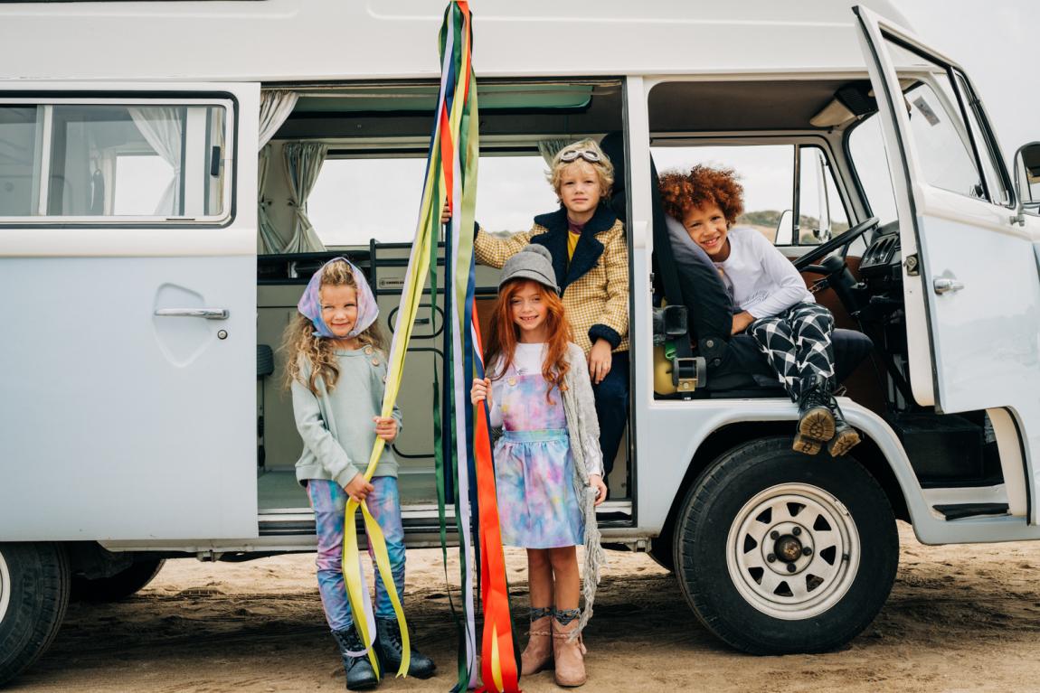 Από αριστερά: Φουτεράκι με Κουκούλα & Το Παντελόνι με τα Χρωματιστά Σύννεφα | Το Φόρεμα με τα Χρωματιστά Σύννεφα | Το Μπουφάν του Μικρού Εξερευνητή | Το Παντελόνι του Καντίνσκι