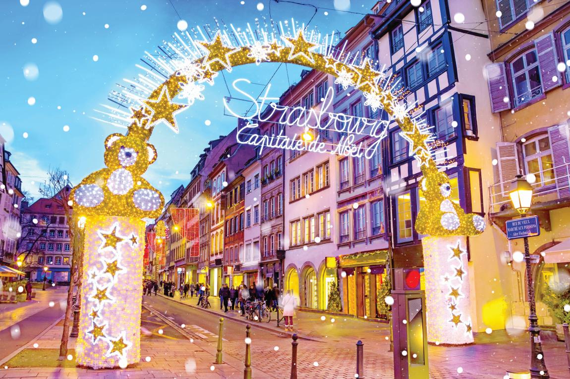 Μόλις προσγειωθήκαμε στο Στρασβούργο! Ξεκινάμε με μία βόλτα στο ιστορικό κέντρο της πόλης, με τα λαμπερά φώτα, τους ήχους από τις χορωδίες και τα κάλαντα, και απολαμβάνουμε τη γιορτινή ατμόσφαιρα. Γνωστό και ως «Πρωτεύουσα των Χριστουγέννων», το Στρασβούργο φιλοξενεί την παλαιότερη χριστουγεννιάτικη αγορά της Γαλλίας, Christkindelsmärik, που χρονολογείται από το 1570.