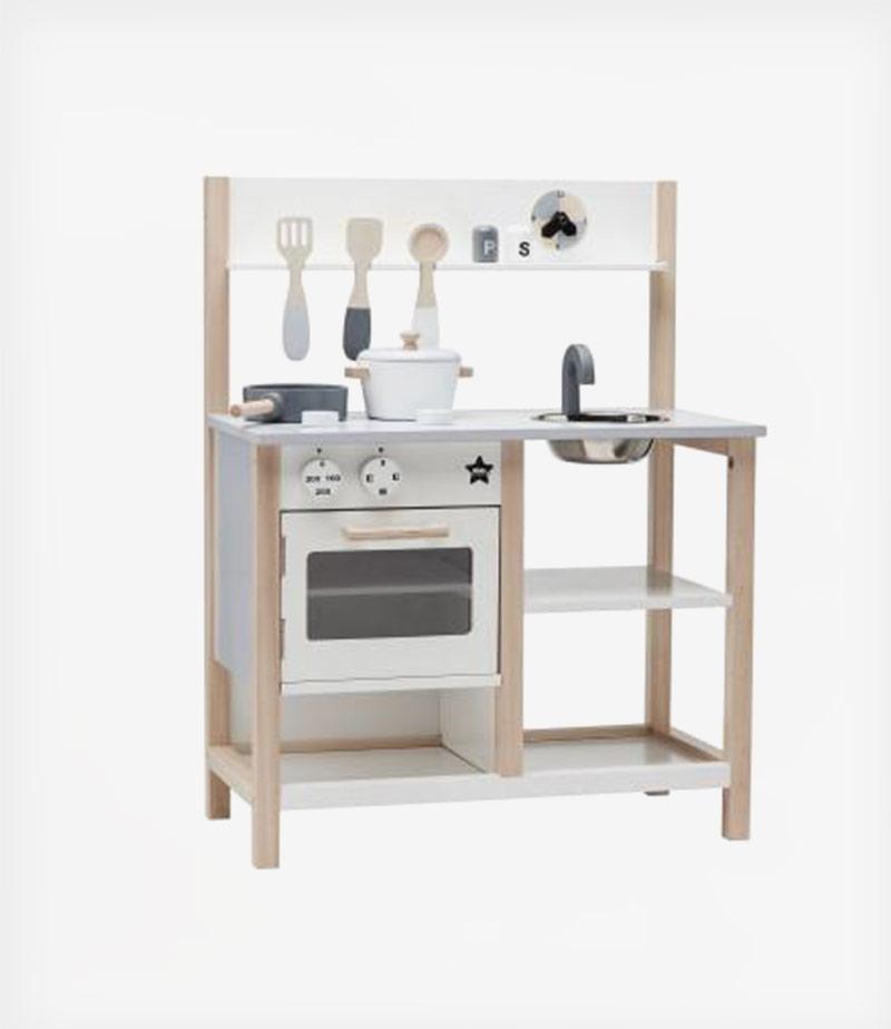 Kids Concept Κουζίνα Παιχνιδιού: Κομψή, ξύλινη κουζίνα, ιδανική για τον μικρό μάγειρα ή τον αρτοποιό σας! Συνοδεύεται από πολλά αξεσουάρ όπως ρολόι, γλάστρες και ταψιά, ανοιχτή πόρτα φούρνου, νεροχύτη και κουτάλες. Ηλικία: 3+ ετών.