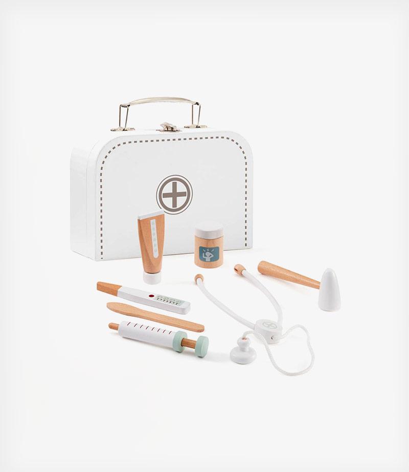 Kids Concept Βαλιτσάκι Γιατρού Με Ξύλινα Όργανα: Μια υπέροχη ιατρική τσάντα που βοηθά τα μικρά παιδιά να εξοικειωθούν με το επάγγελμα του γιατρού και να μη φοβούνται να τον επισκεφτούν! Διαθέτει όλα τα εργαλεία που χρειάζονται για να μάθουν να ελέγχουν τους καρδιακούς παλμούς, να μετρούν τη θερμοκρασία του σώματος και να θεραπεύουν τα τραύματα. Ηλικία: 3+ ετών.